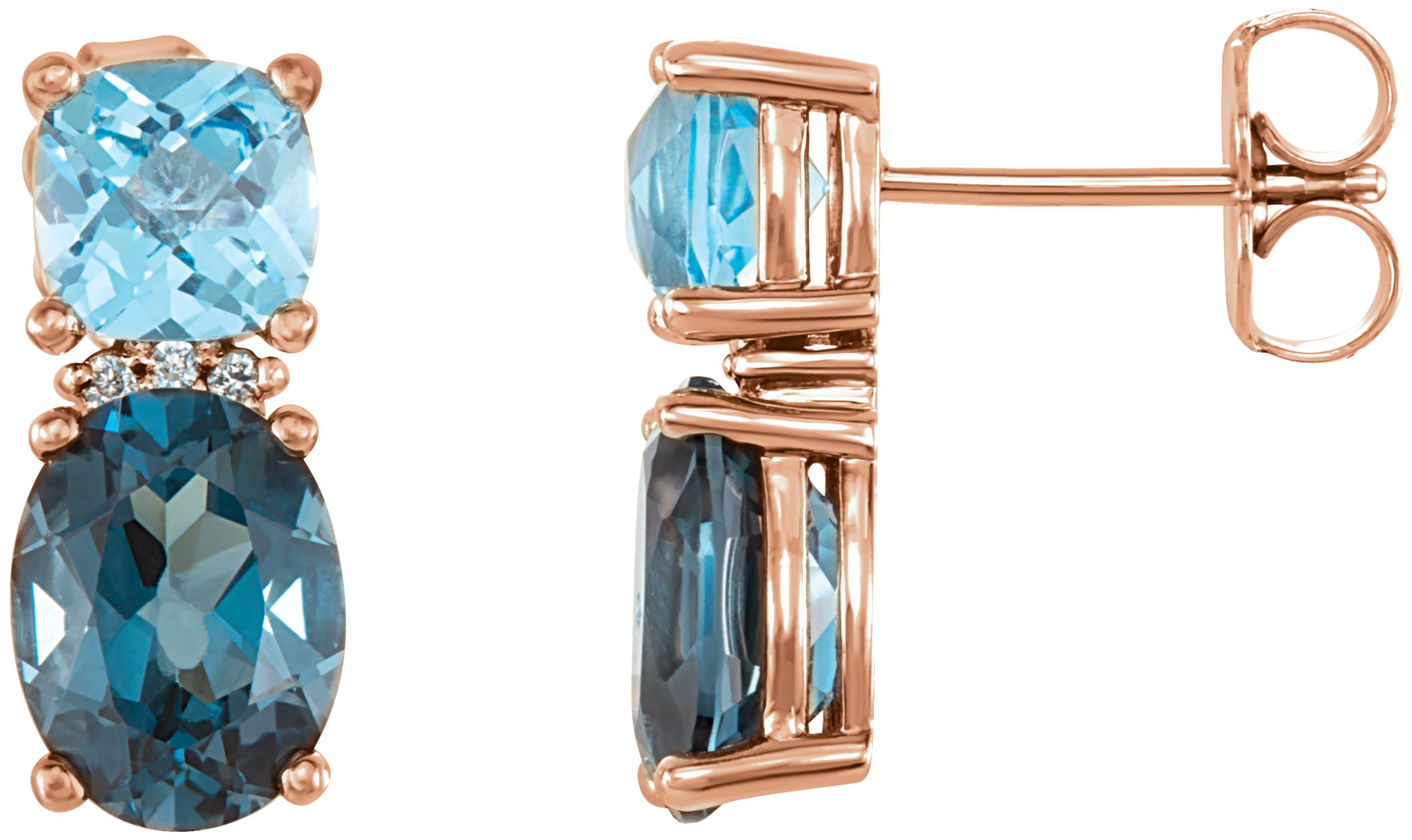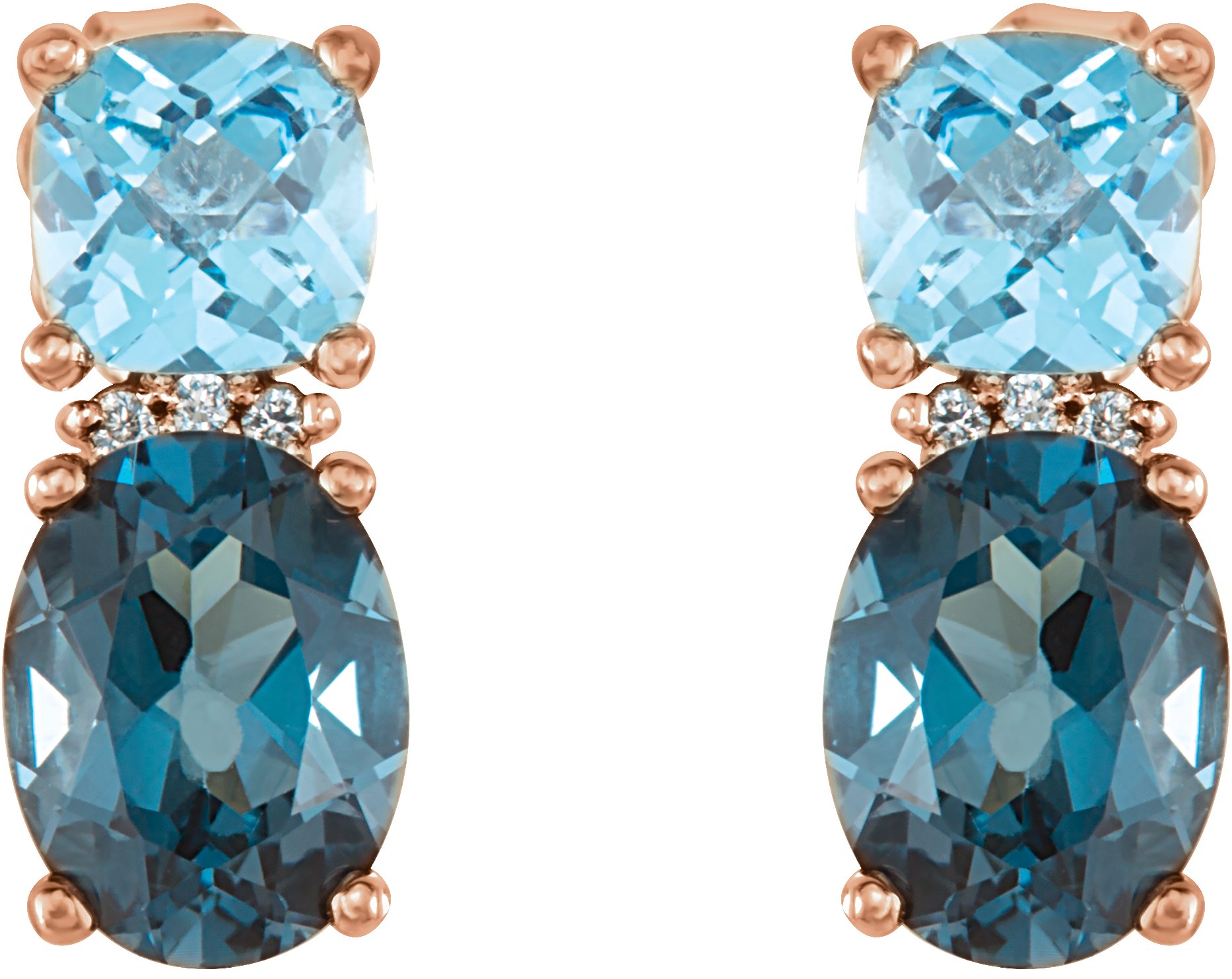 14K Rose London Blue Topaz, Swiss Blue Topaz & .01 CTW Diamond Earrings