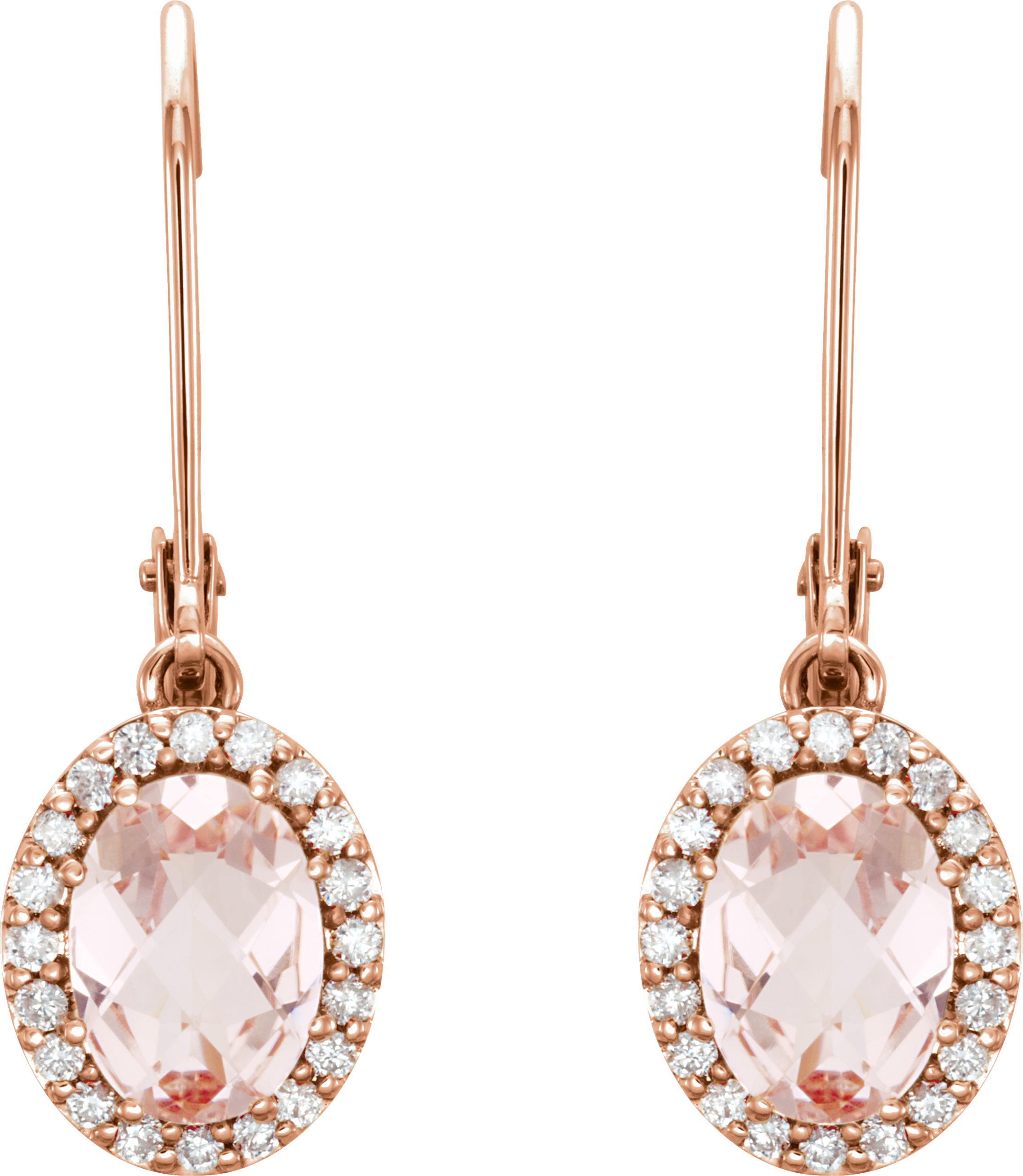 14K Rose Morganite & 1/5 CTW Diamond Earrings