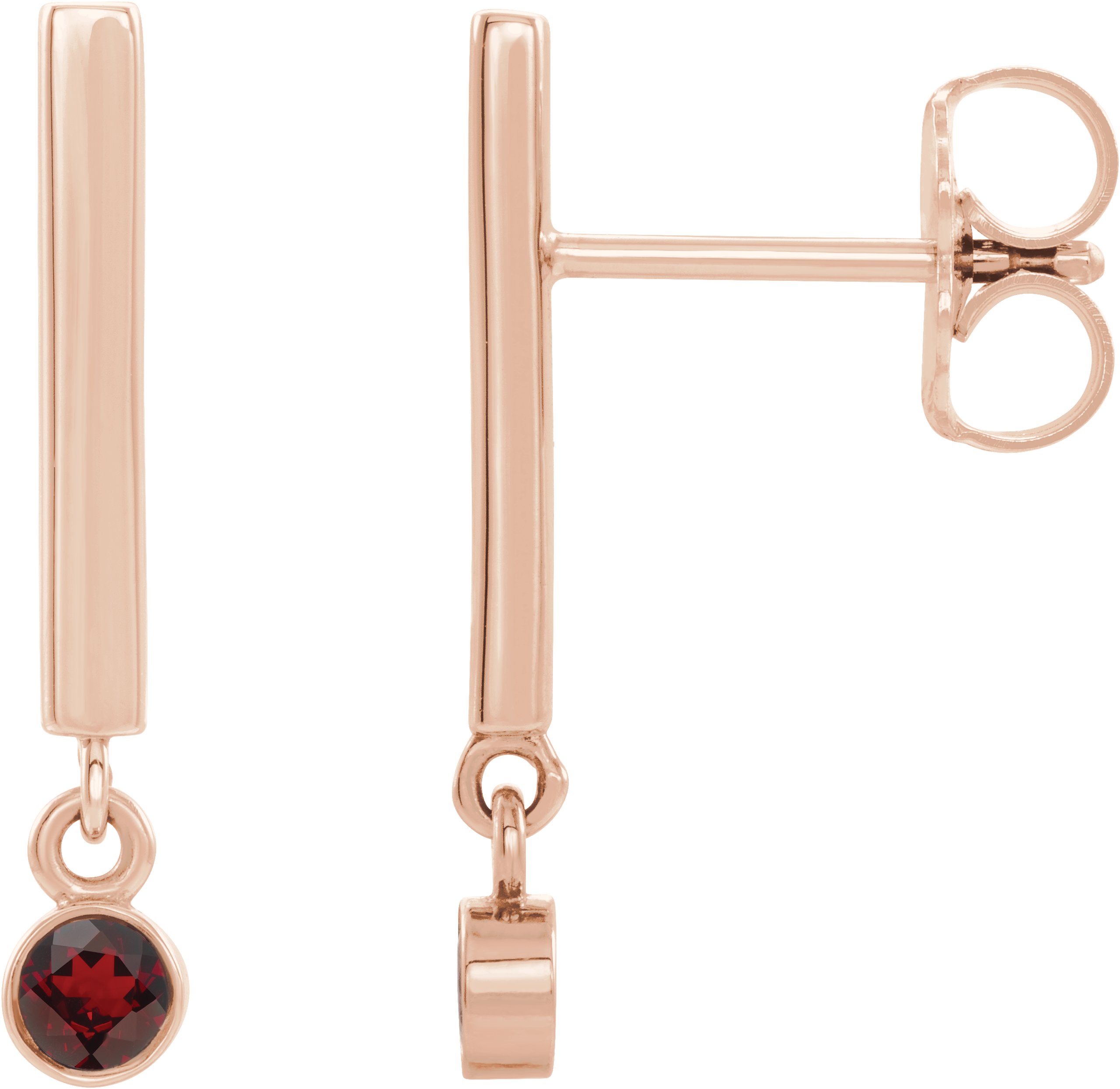 14K Rose Mozambique Garnet Bar Earrings