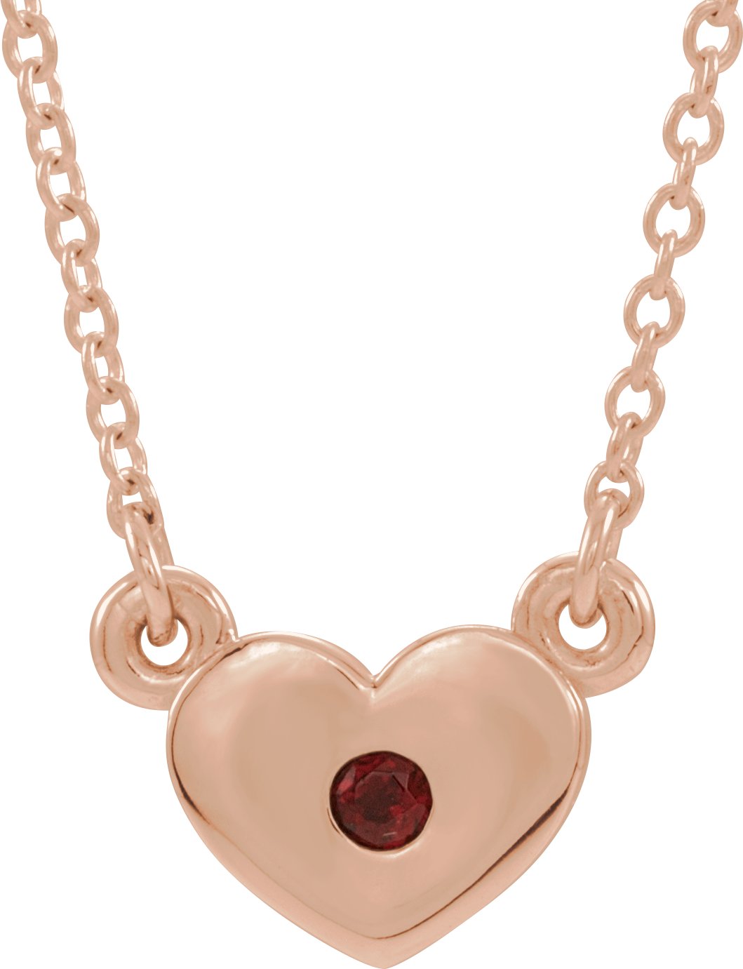 14K Rose Mozambique Garnet Heart 16 inch Necklace
