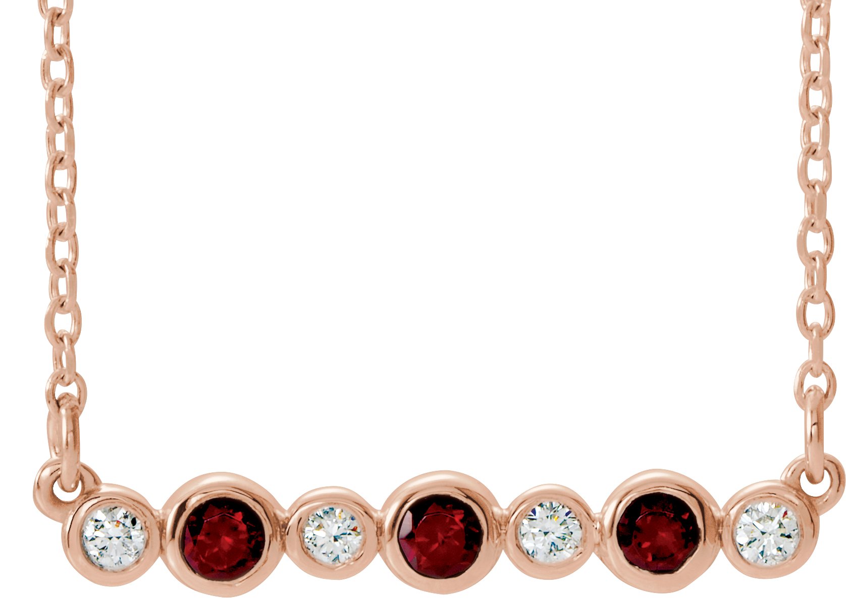 14K Rose Mozambique Garnet & .08 CTW Diamond Bezel *Set Bar 16 18" Necklace Ref. 14204893