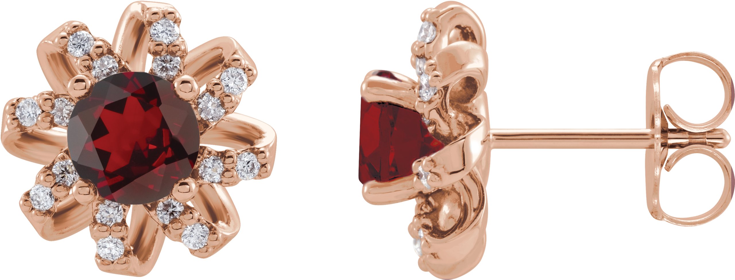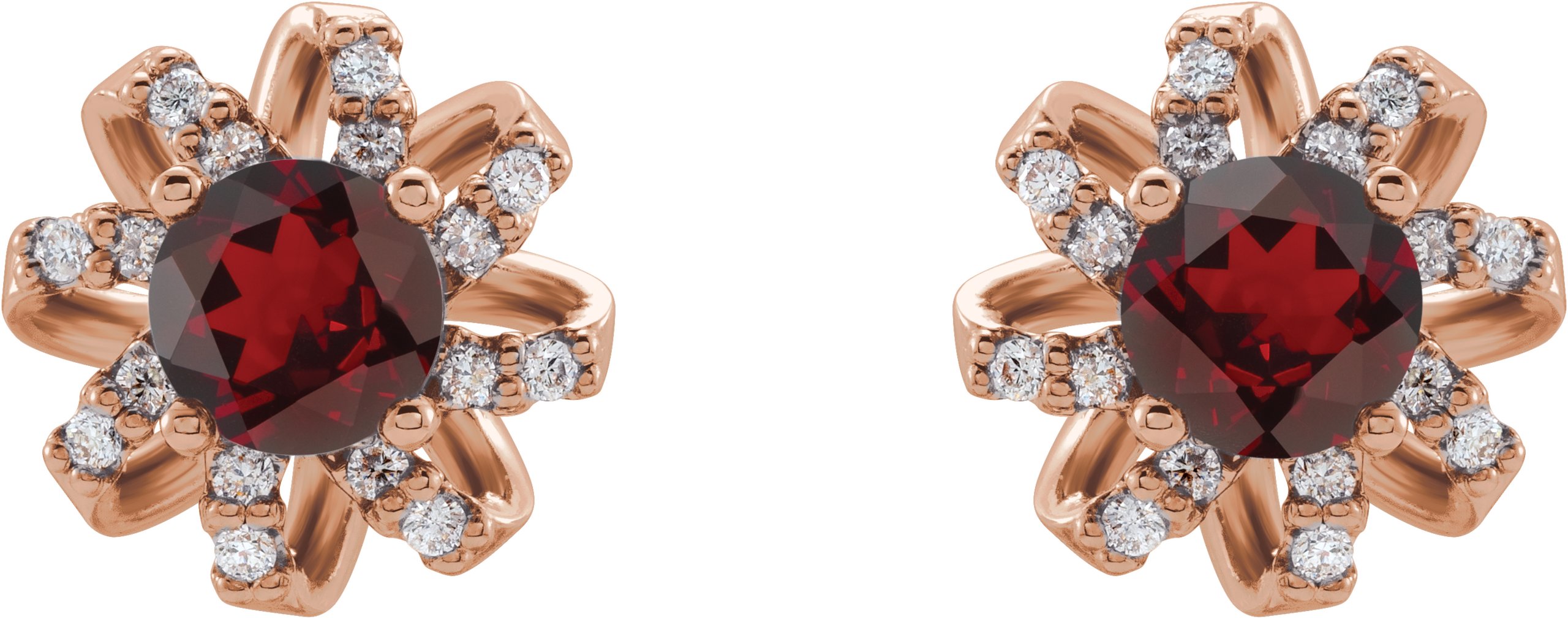 14K Rose Mozambique Garnet and .125 CTW Diamond Halo Style Earrings