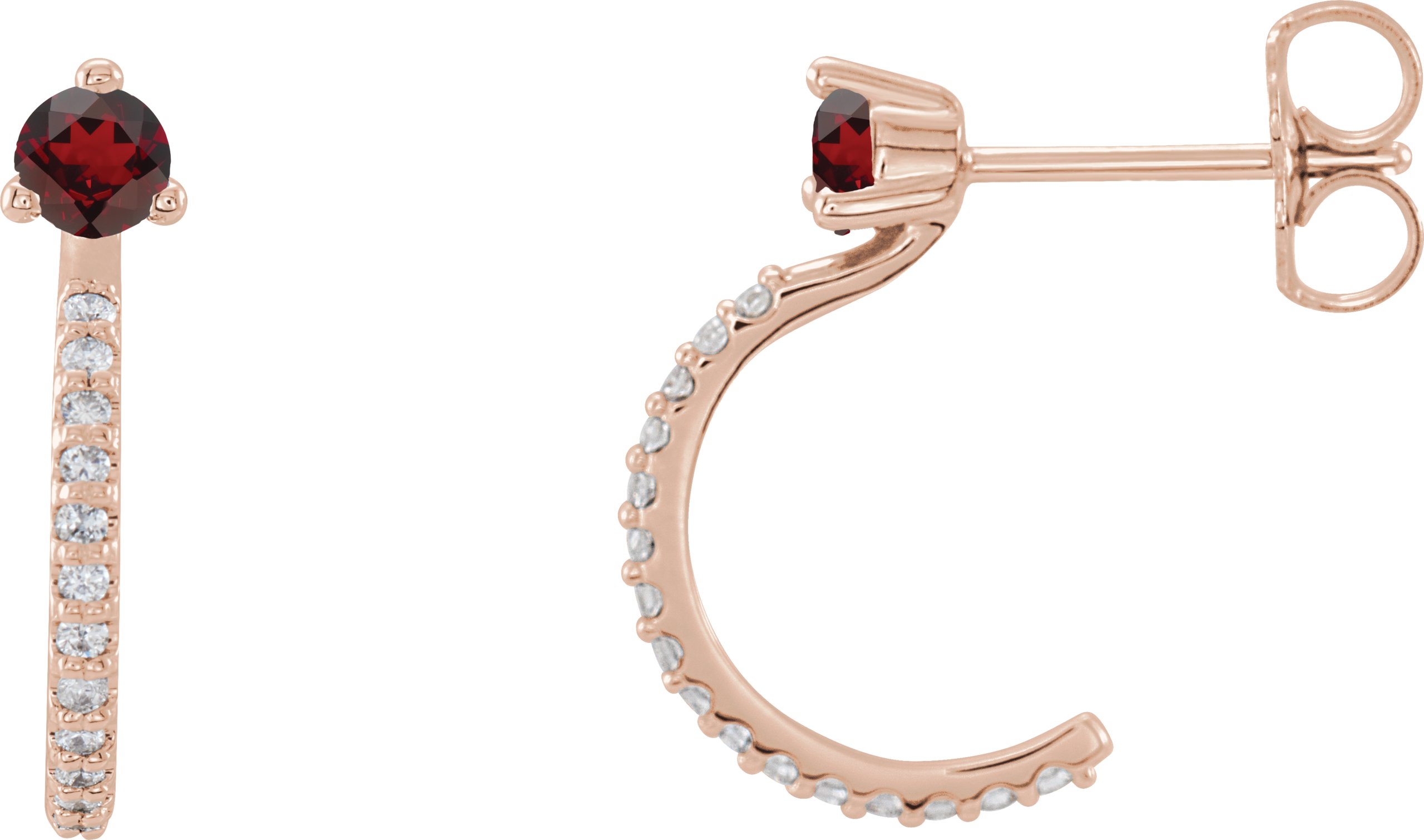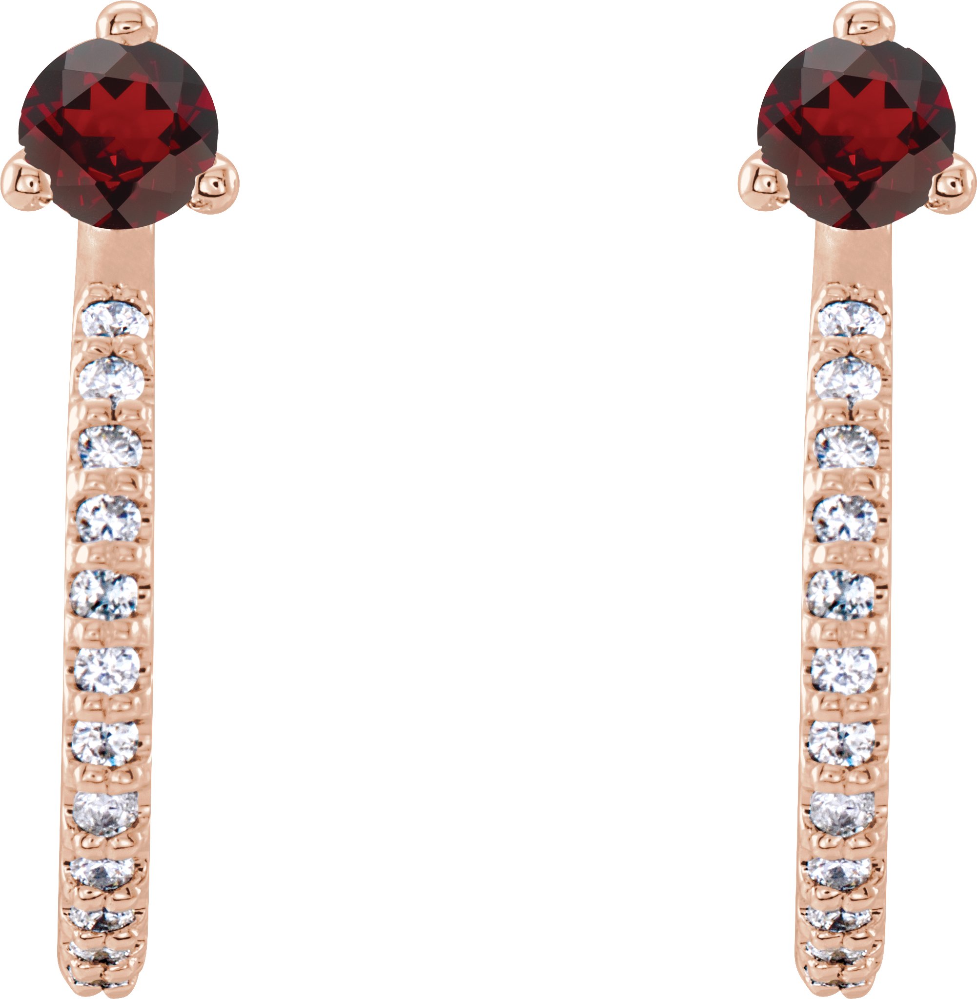 14K Rose Mozambique Garnet and .17 CTW Diamond Hoop Earrings