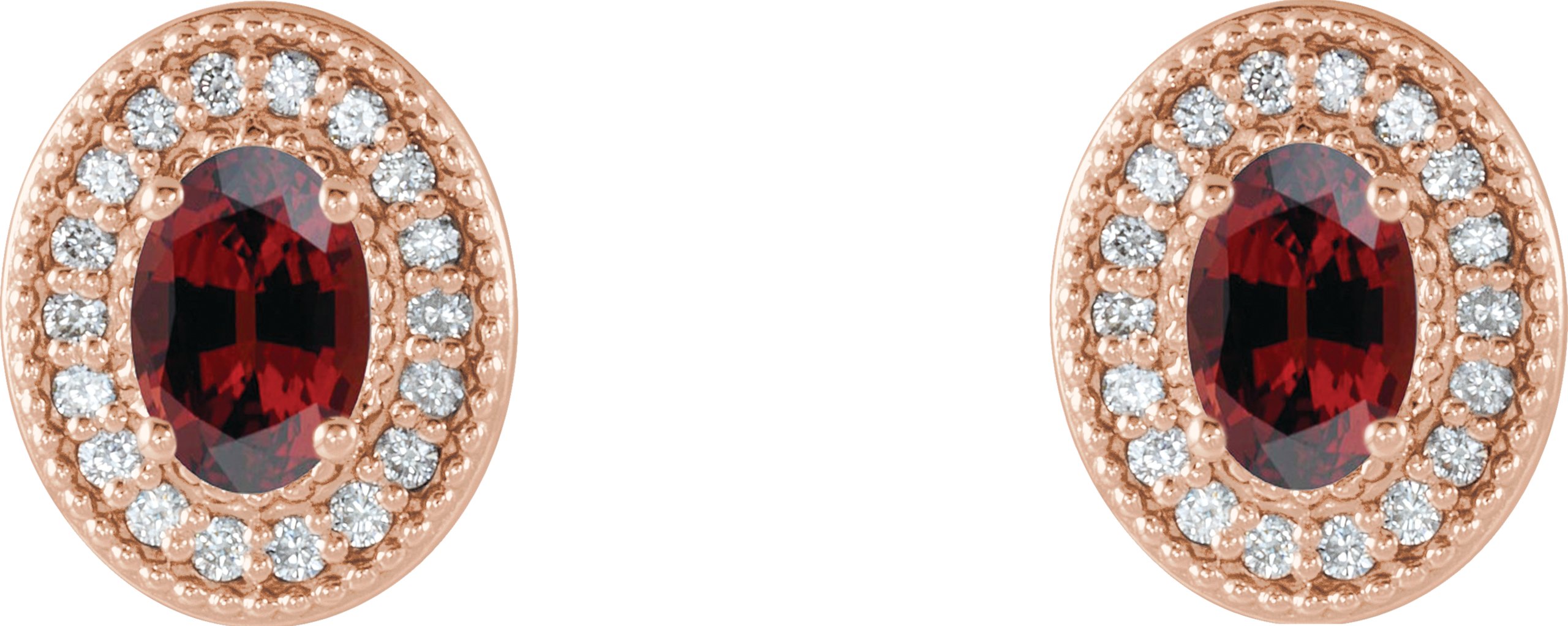 14K Rose Mozambique Garnet & 1/5 CTW Diamond Halo Style Earrings