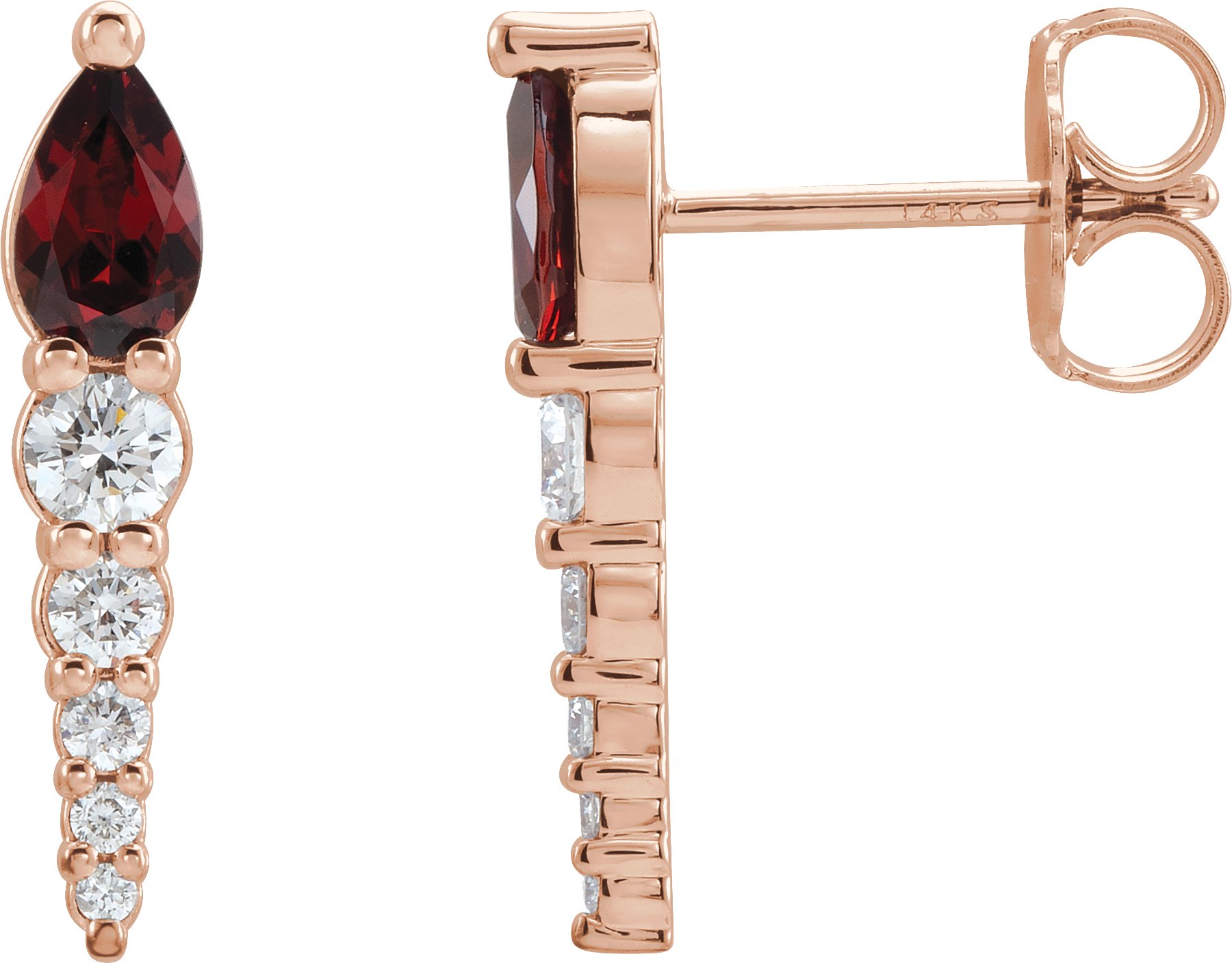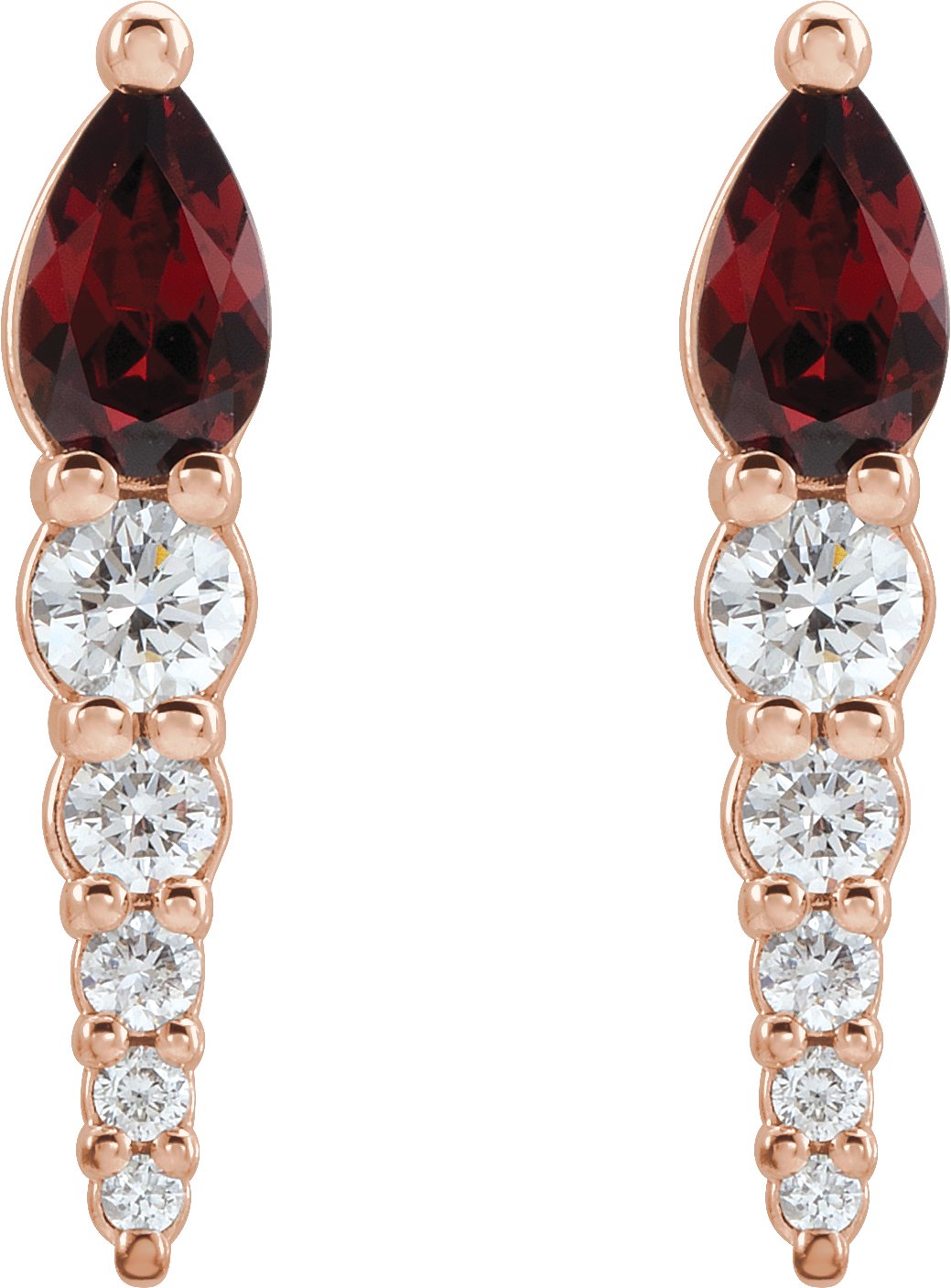 14K Rose Mozambique Garnet & 1/4 CTW Diamond Earrings