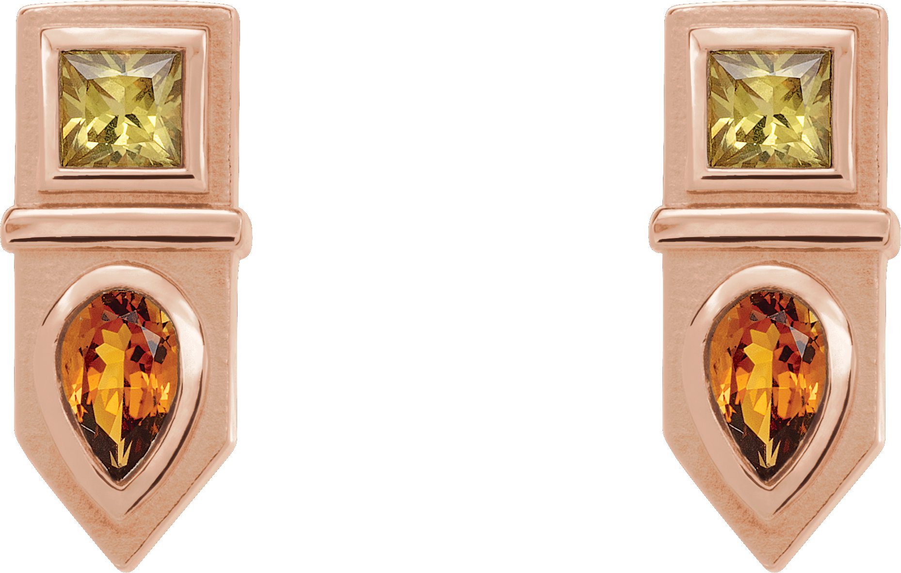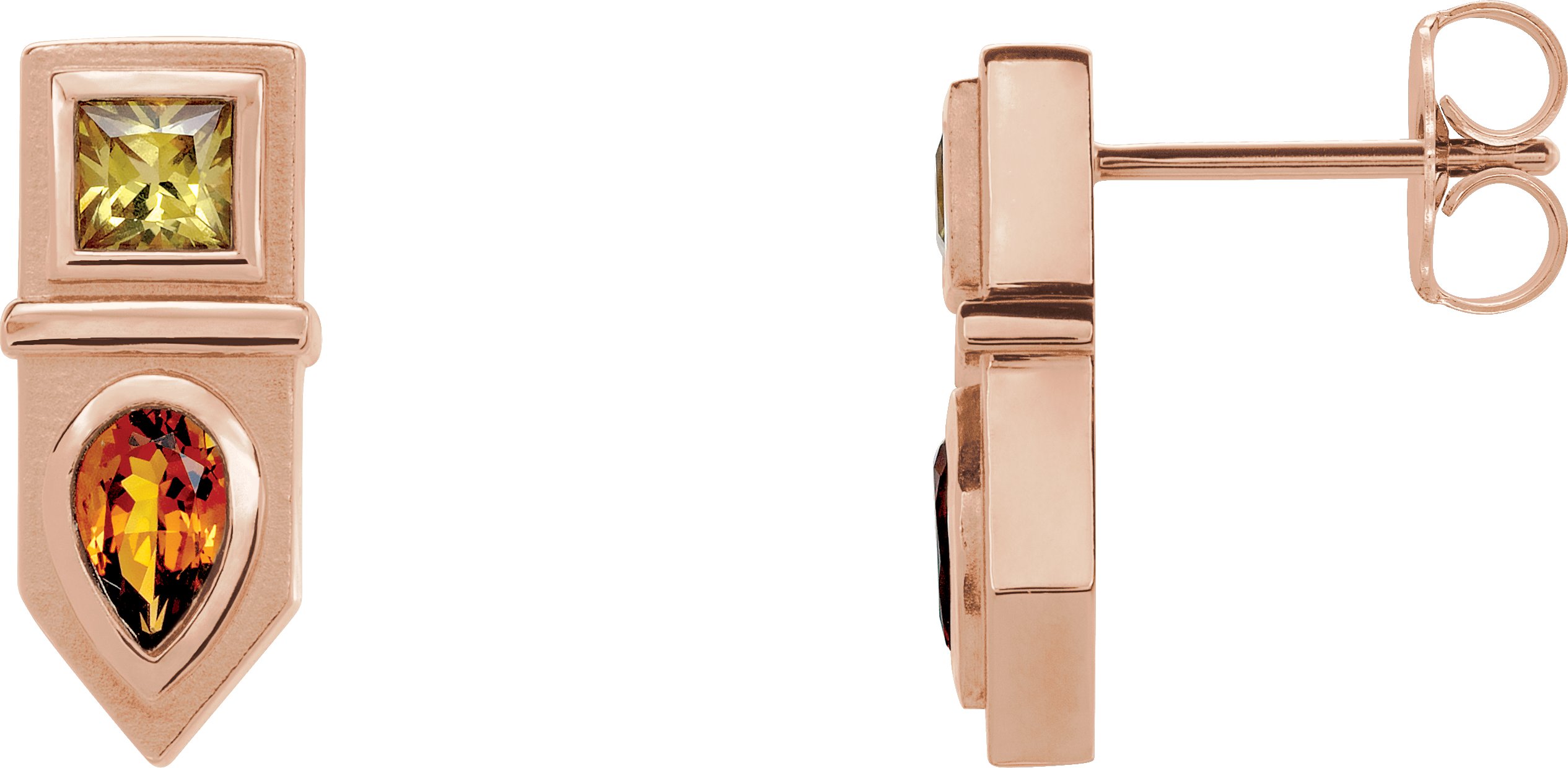 14K Rose Multi Gemstone Geometric Bar Drop Earrings