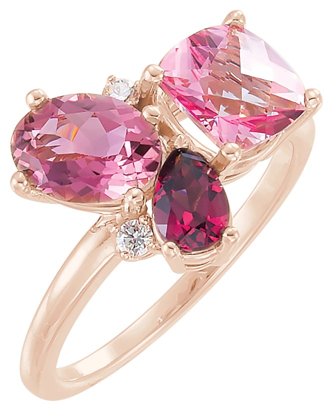 14K Rose Multi Gemstone & .05 CTW Diamond Cluster Ring