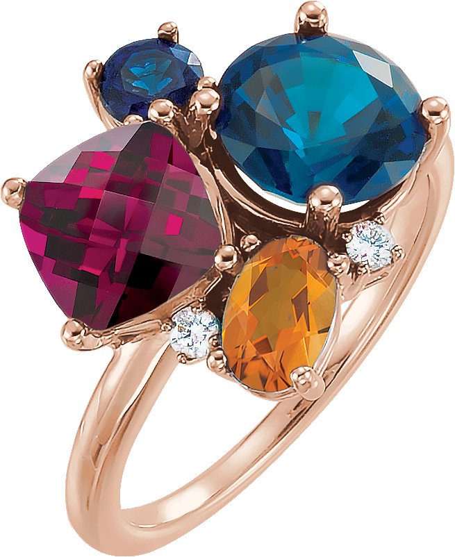 14K Rose Multi Gemstone and .05 CTW Diamond Ring