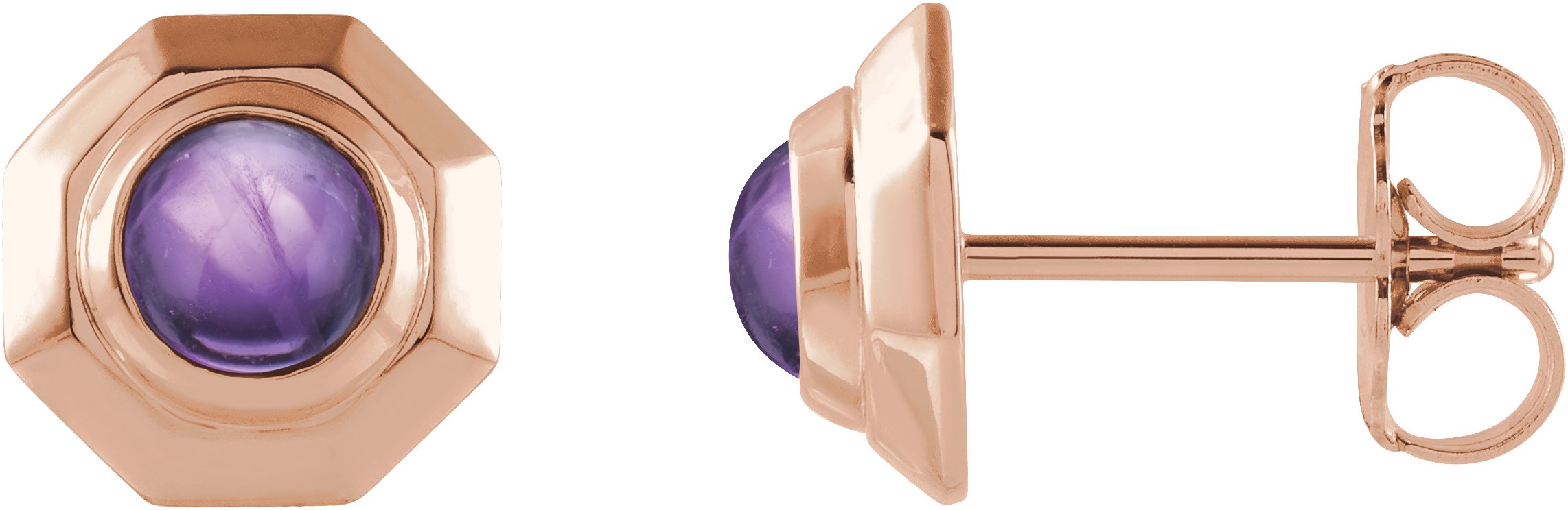 14K Rose Natural Amethyst Geometric Cabochon Earrings Ref 17399477