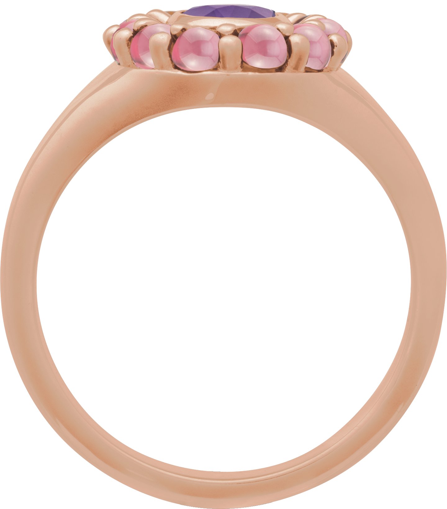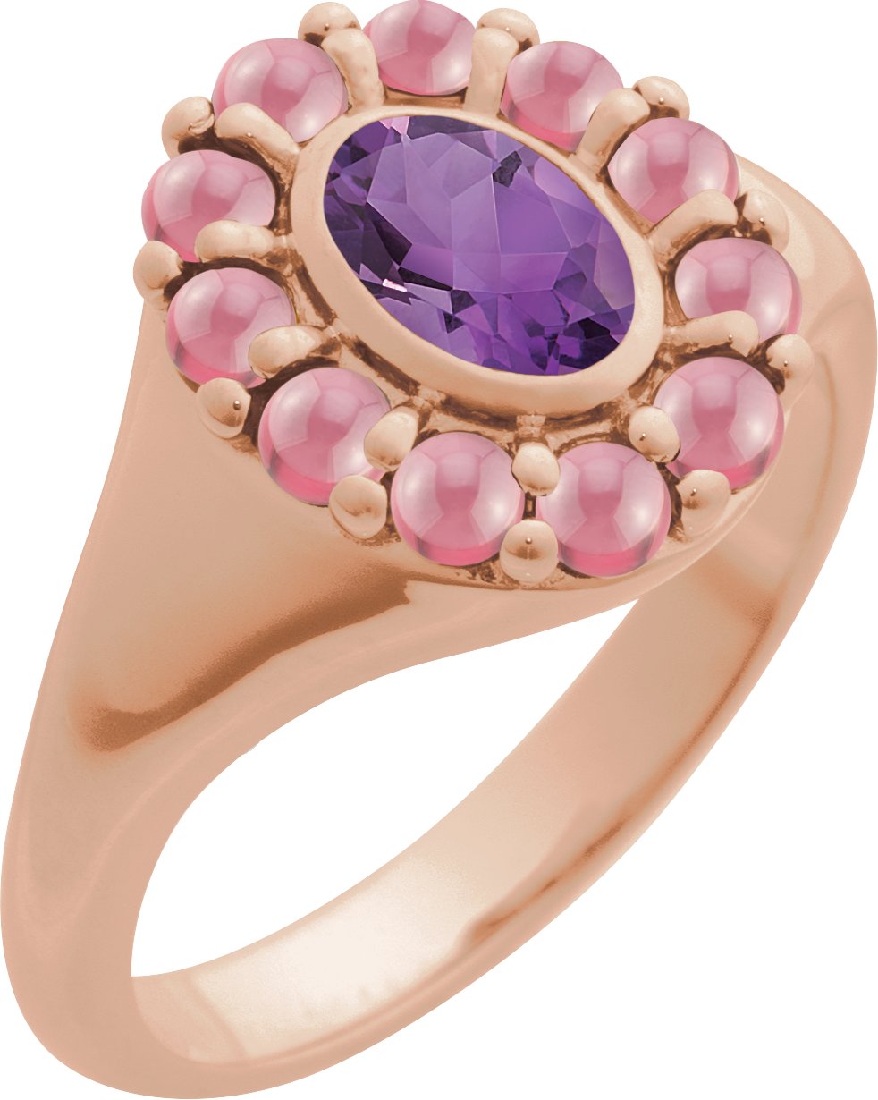 14K Rose Natural Amethyst & Natural Rhodolite Garnet Halo-Style Ring