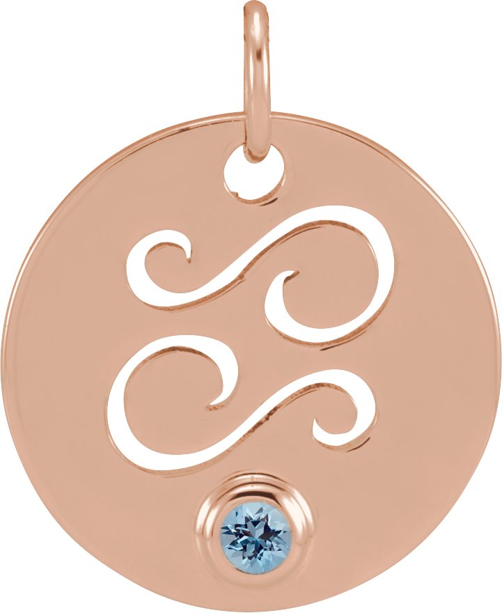 14K Rose Natural Aquamarine Cancer Zodiac Pendant Ref 17886646