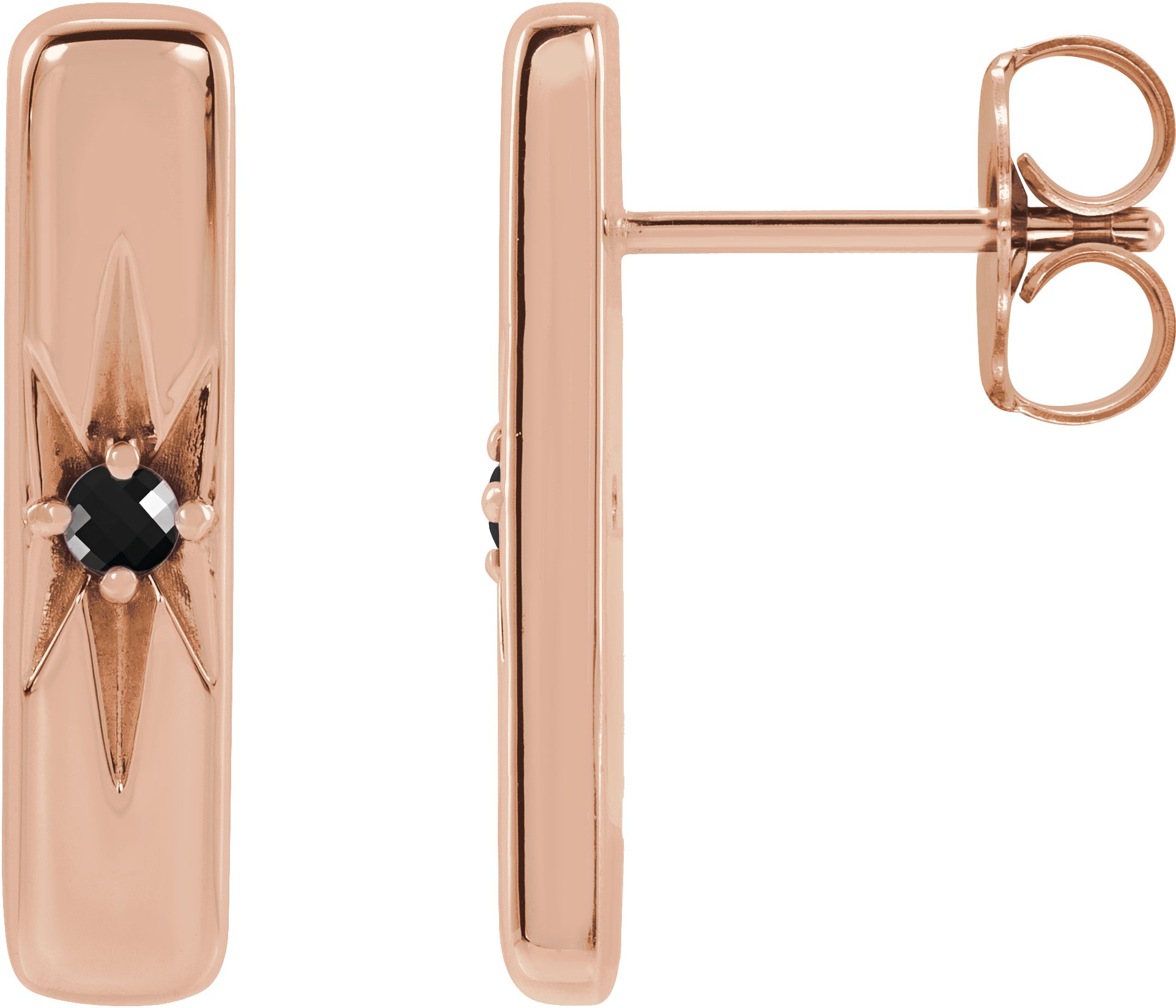 14K Rose Natural Black Onyx Starburst Bar Earrings Ref 17342747