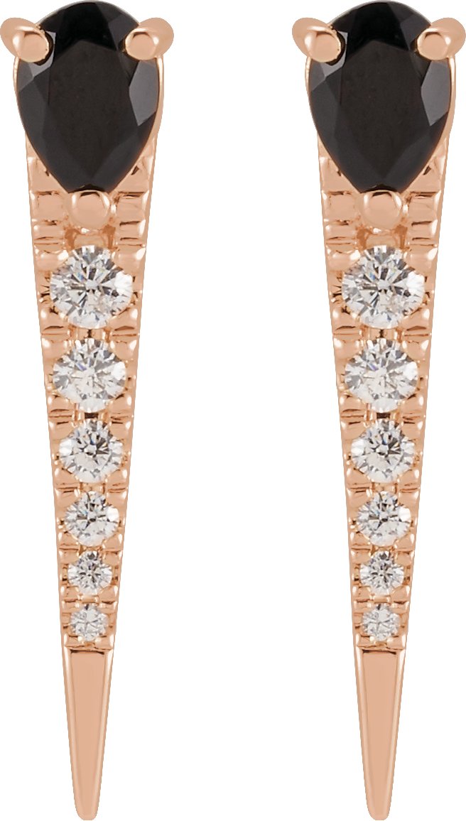 14K Rose Natural Black Onyx and 0.13 CTW Natural Diamond Spike Earrings Ref 18620114