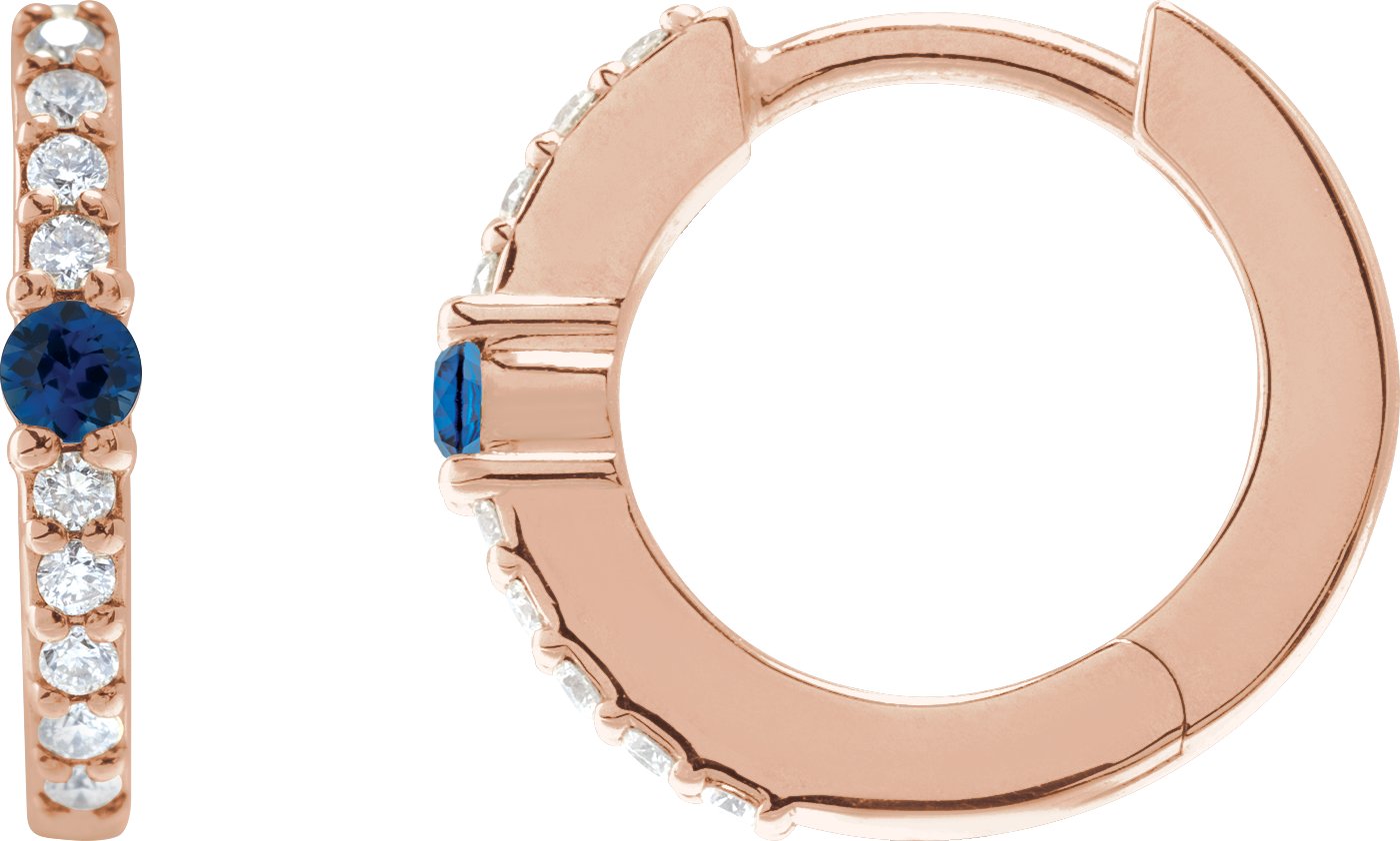 14K Rose Natural Blue Sapphire & 1/8 CTW Natural Diamond 13.6 mm Hoop Earring