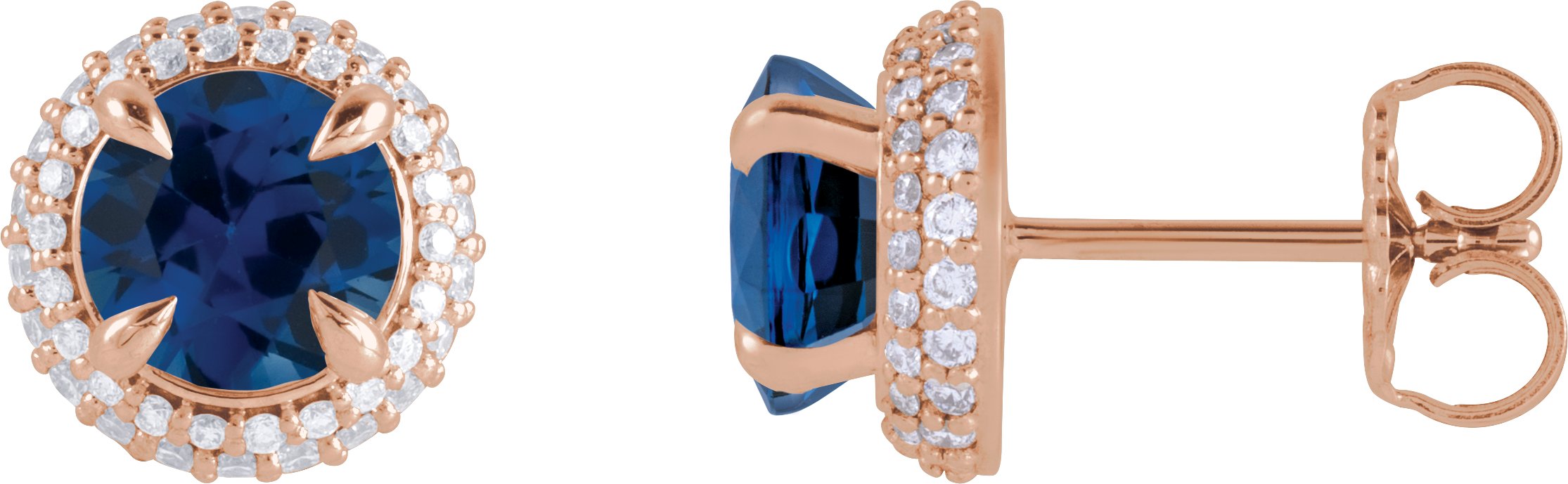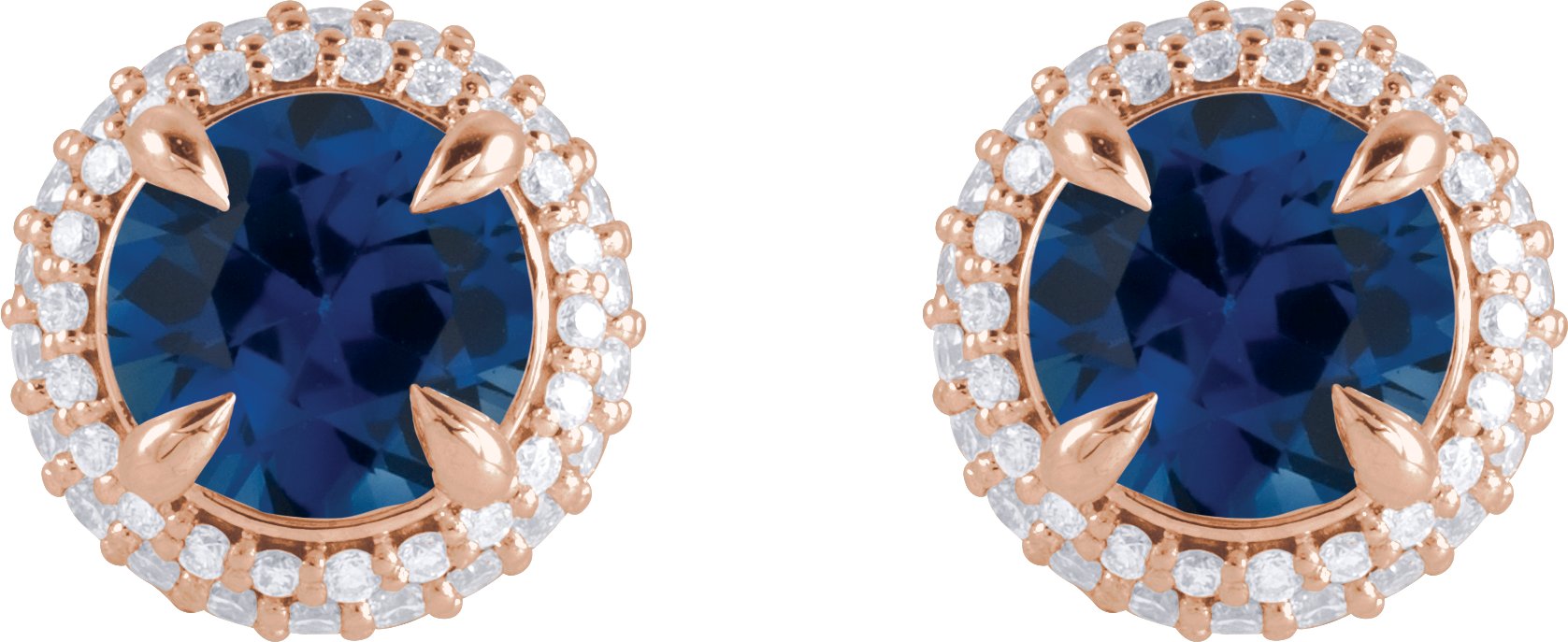 14K Rose Natural Blue Sapphire & 1/2 CTW Lab-Grown Diamond Halo-Style Earrings
