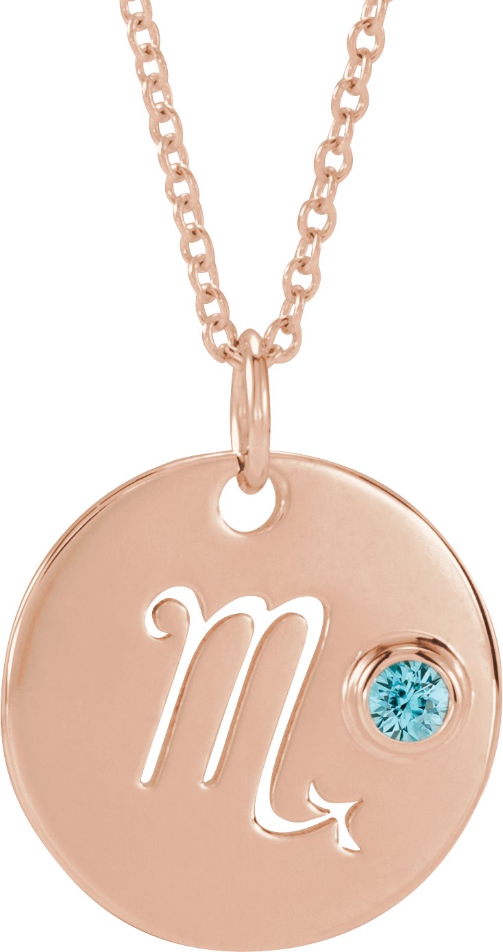 14K Rose Natural Blue Zircon Scorpio Zodiac 16 to 18 inch Necklace Ref 17886630