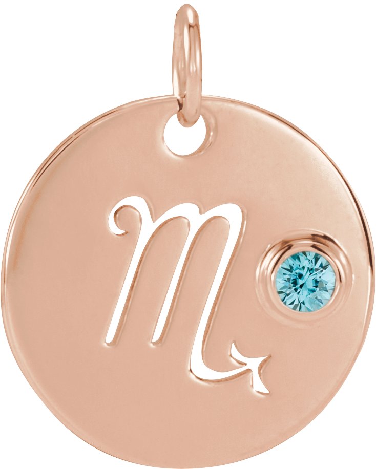 14K Rose Natural Blue Zircon Scorpio Zodiac Pendant Ref 17886543