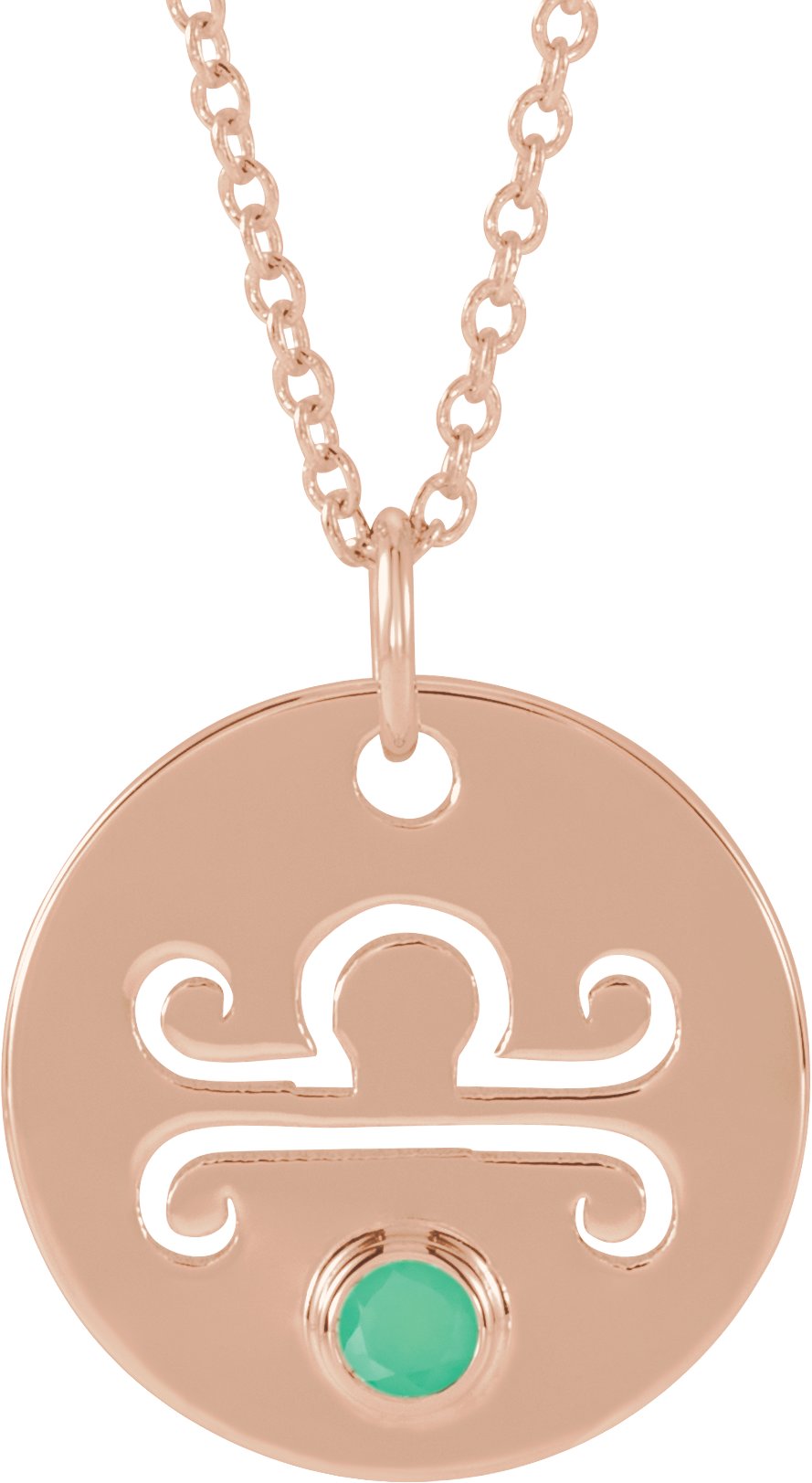 14K Rose Natural Chrysoprase Libra Zodiac 16 to 18 inch Necklace Ref 17886546