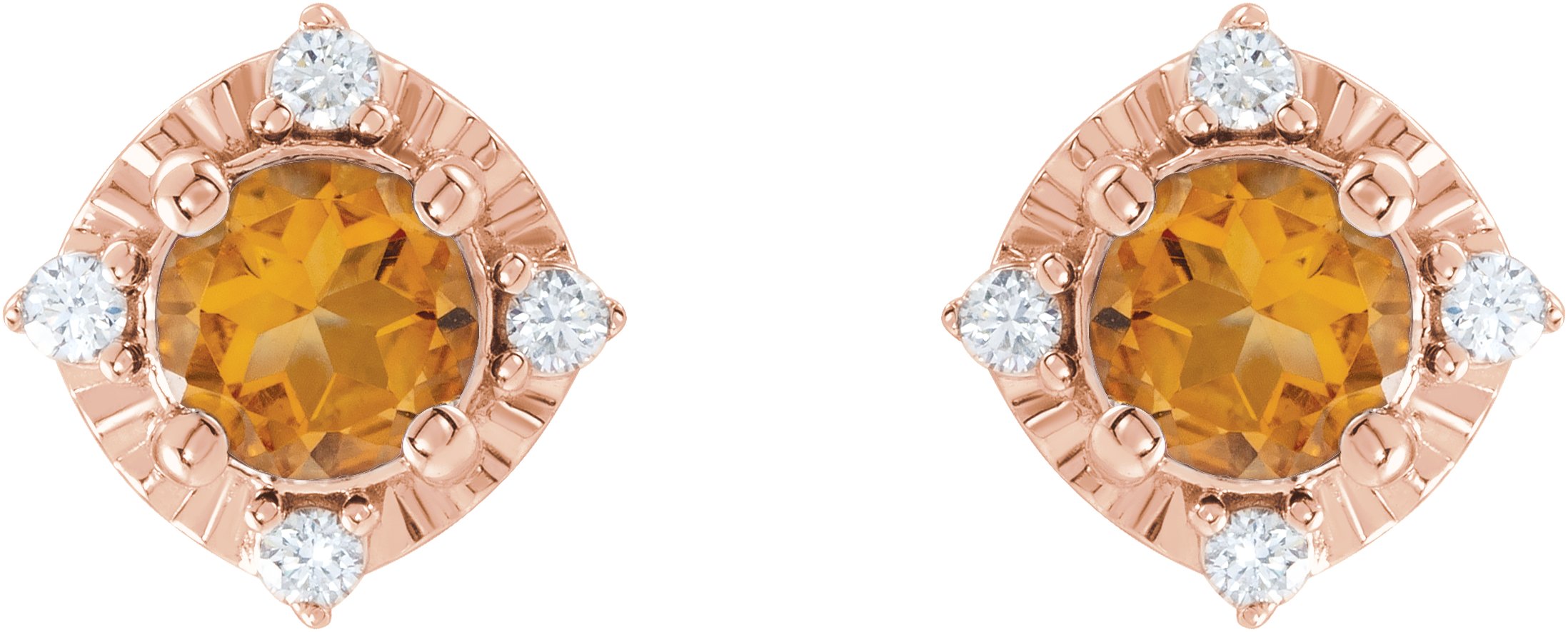 14K Rose Natural Citrine and .08 CTW Natural Diamond Halo Style Earrings Ref 17914966