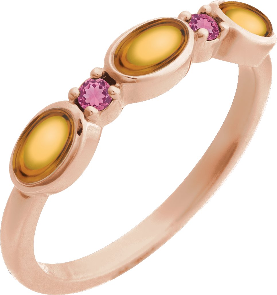 14K Rose Natural Citrine & Natural Pink Tourmaline Stackable Ring