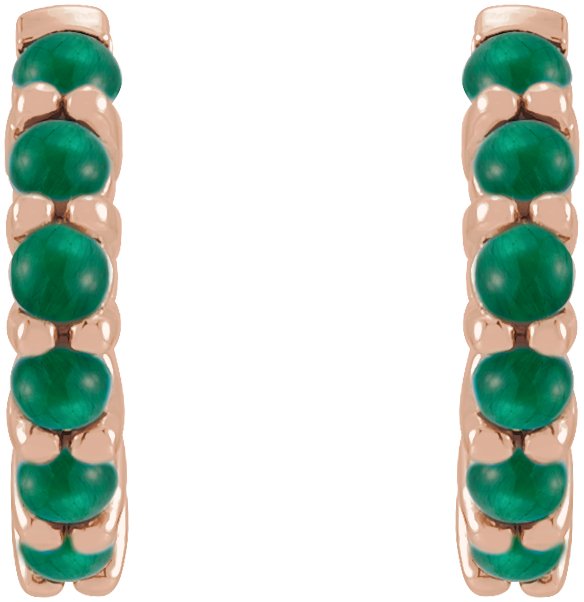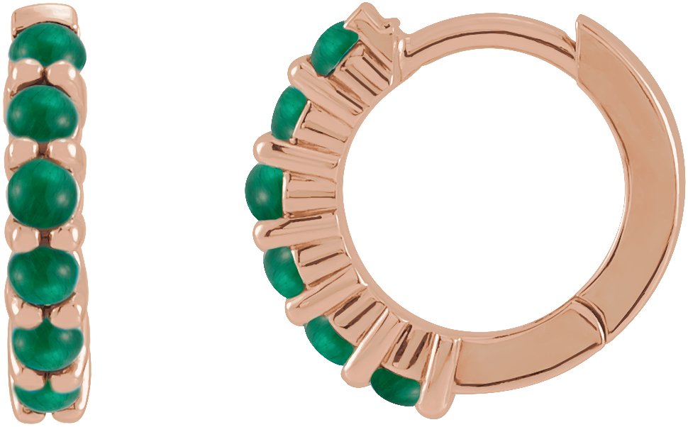14K Rose Natural Emerald Cabochon 12.2 mm Huggie Hoop Earrings