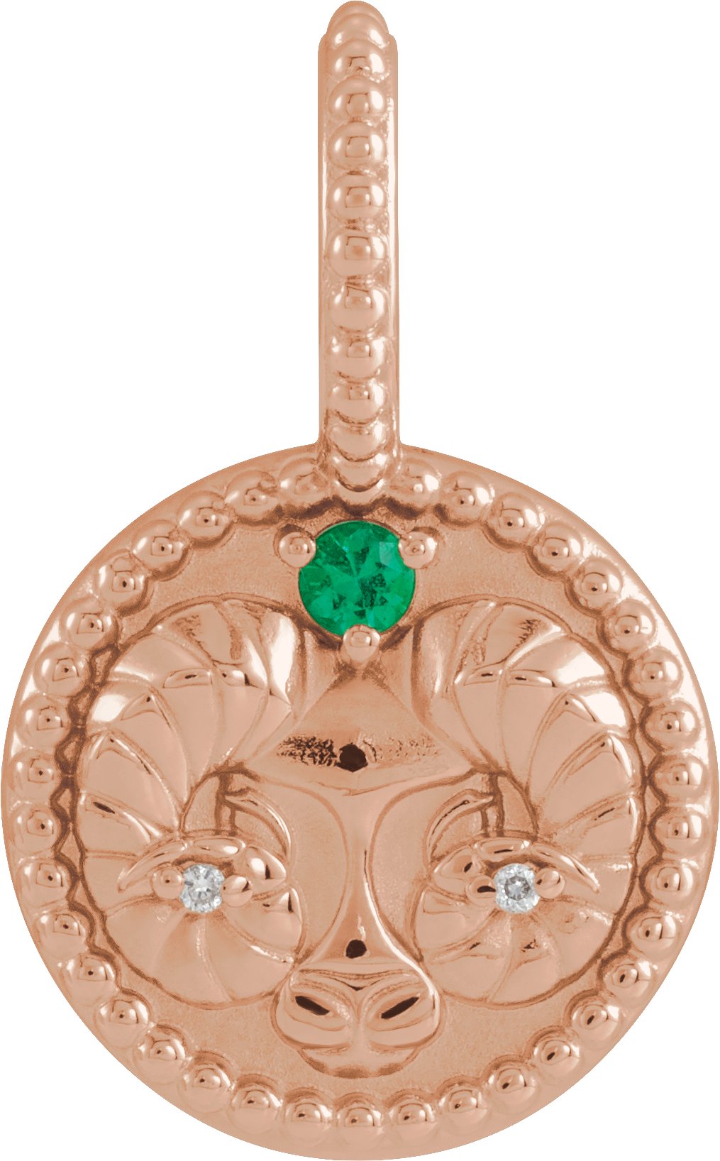 14K Rose Natural Emerald and .005 CTW Natural Diamond Aries Charm or Pendant Ref 19836100