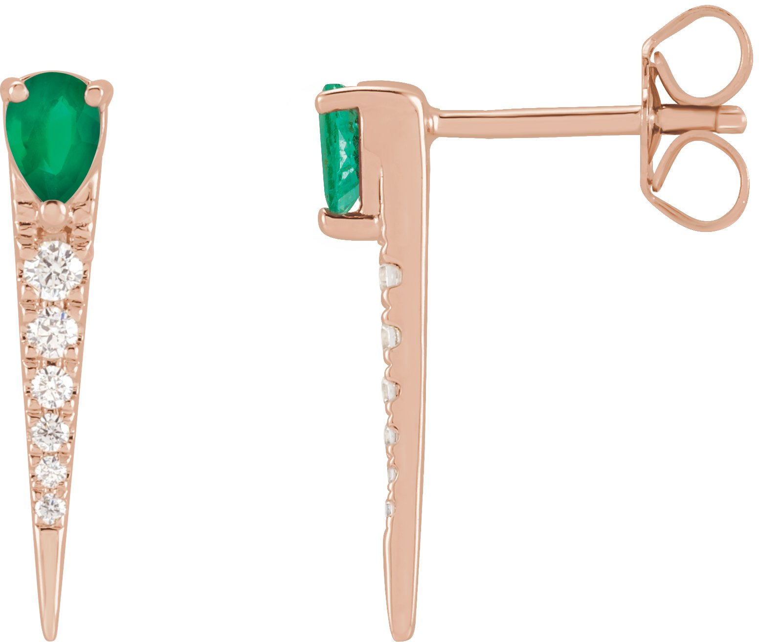 14K Rose Natural Emerald and 0.13 CTW Natural Diamond Spike Earrings Ref 18620111