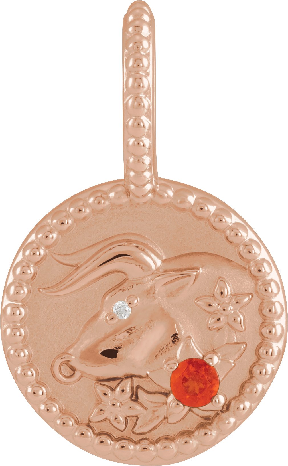 14K Rose Natural Mexican Fire Opal and .0025 CTW Natural Diamond Taurus Charm or Pendant Ref 19836189