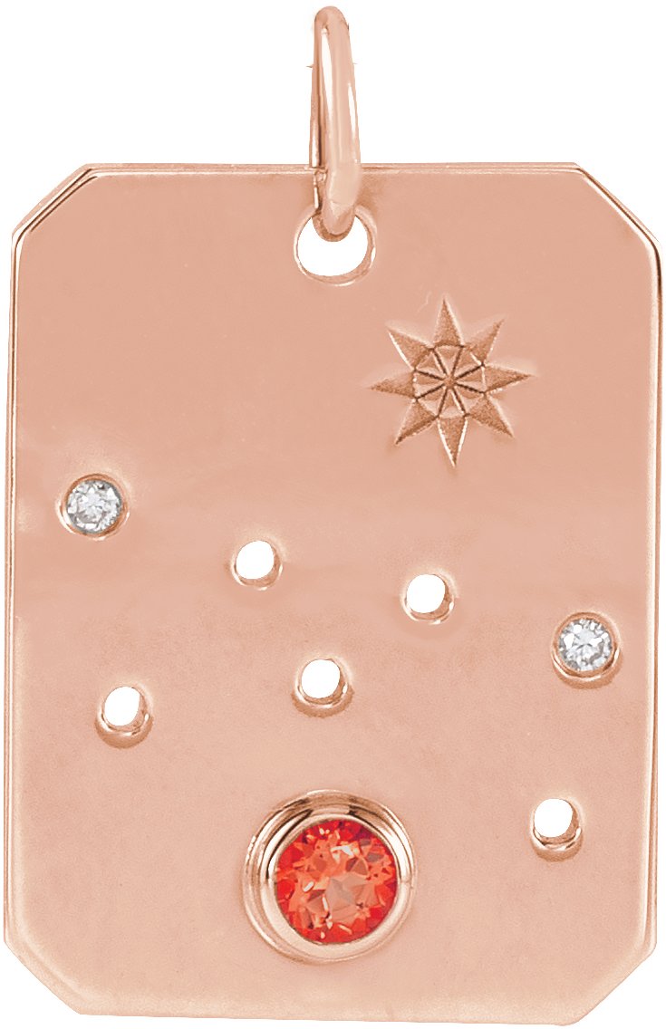 Description: Natural Mexican Fire Opal And Natural Diamond Accented Zodiac Constellation Pendant