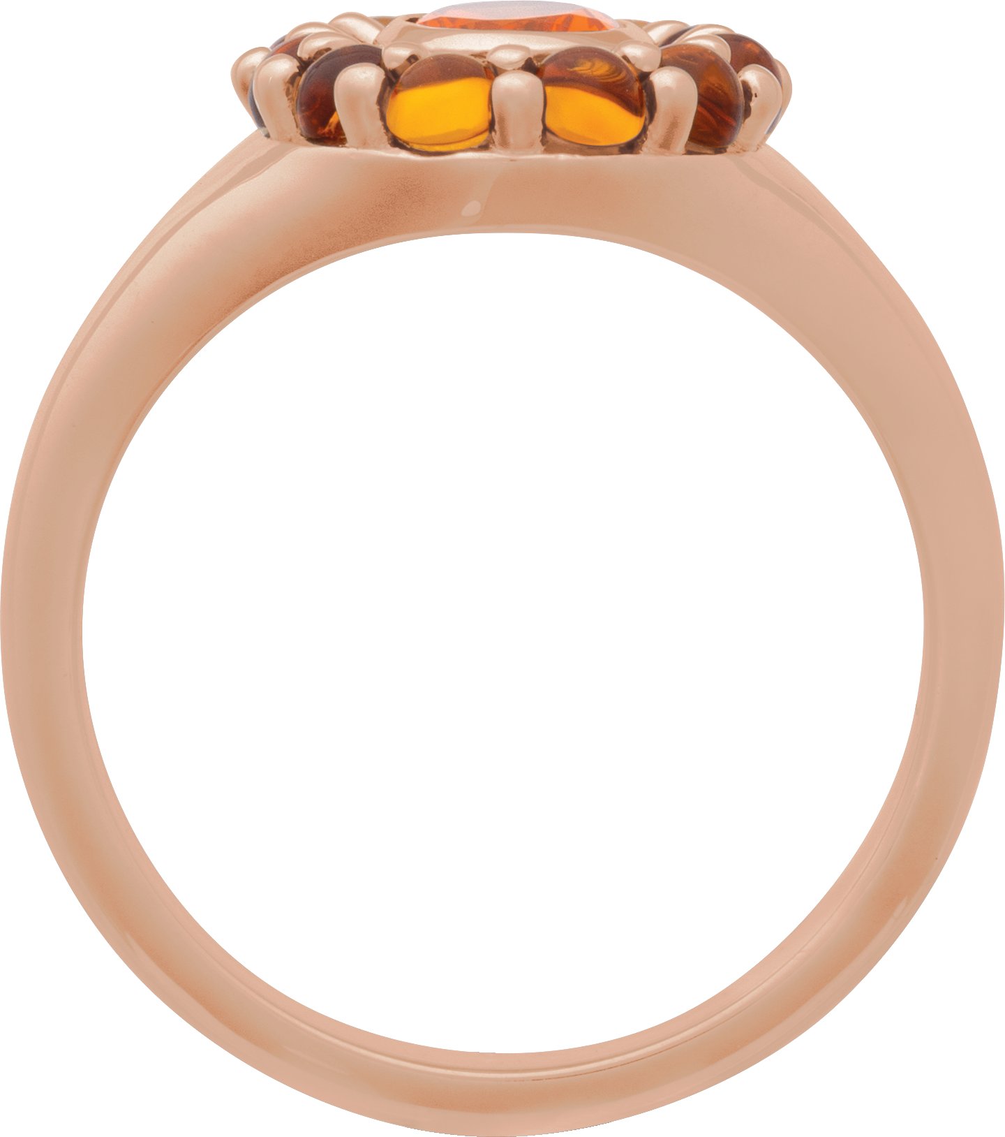 Description: Natural Mexican Fire Opal And Cabochon Natural Citrine Halo-Style Ring
