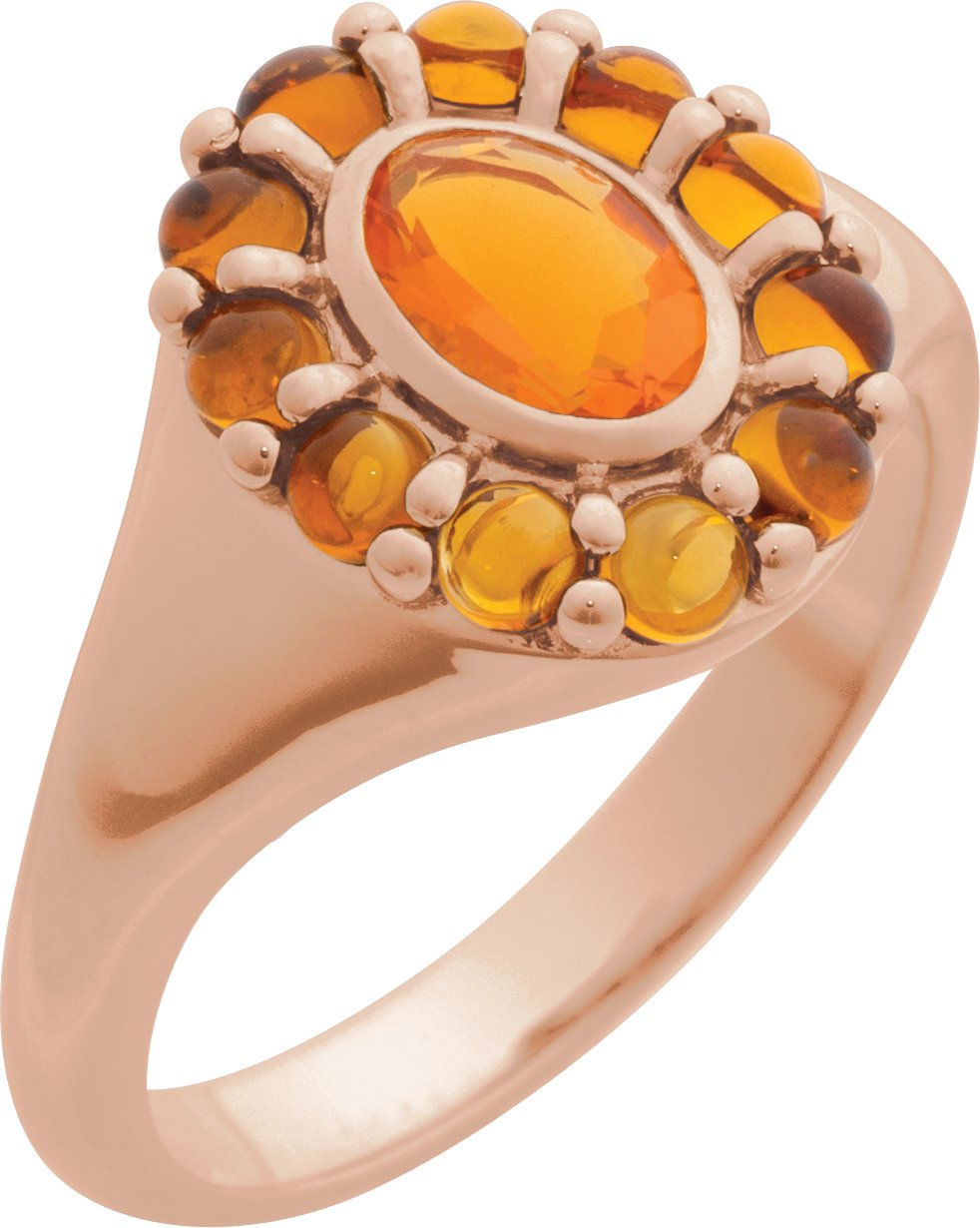 14K Rose Natural Mexican Fire Opal & Natural Citrine Halo-Style Ring