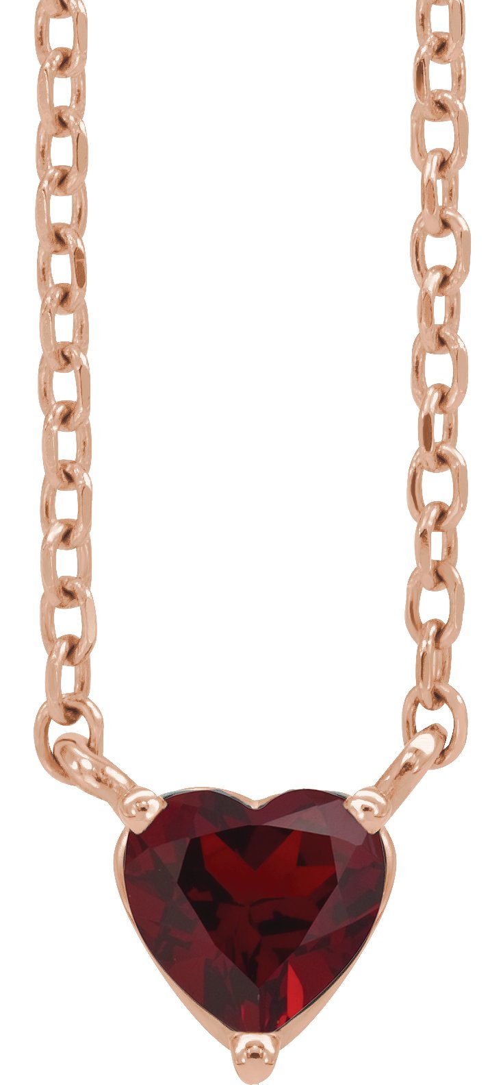14K Rose Natural Mozambique Garnet Heart 16 to 18 inch Necklace Ref 19139394