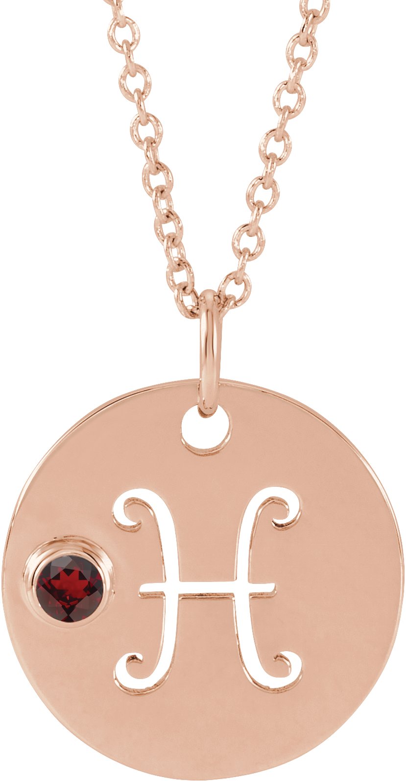 14K Rose Natural Mozambique Garnet Pisces Zodiac 16 to 18 inch Necklace Ref 17886711