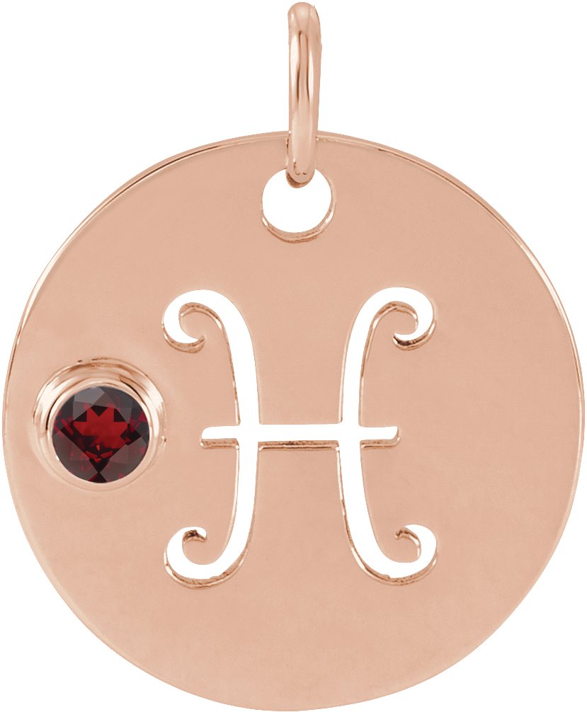 14K Rose Natural Mozambique Garnet Pisces Zodiac Pendant Ref 17886469