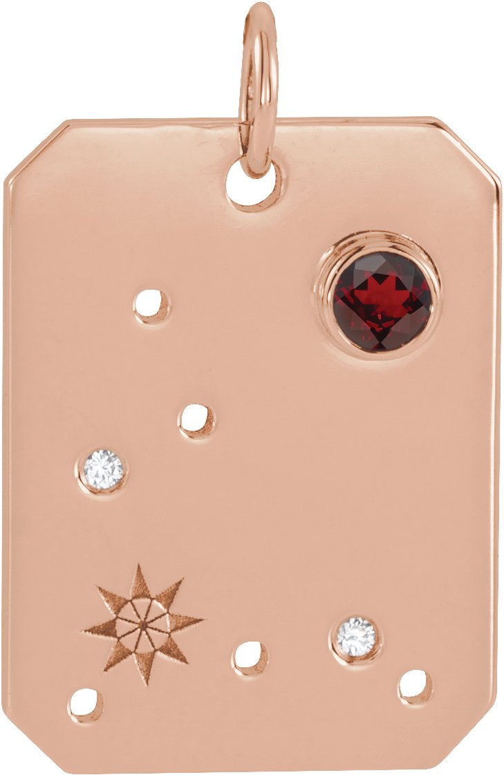 Description: Natural Mozambique Garnet And Natural Diamond Accented Zodiac Constellation Pendant