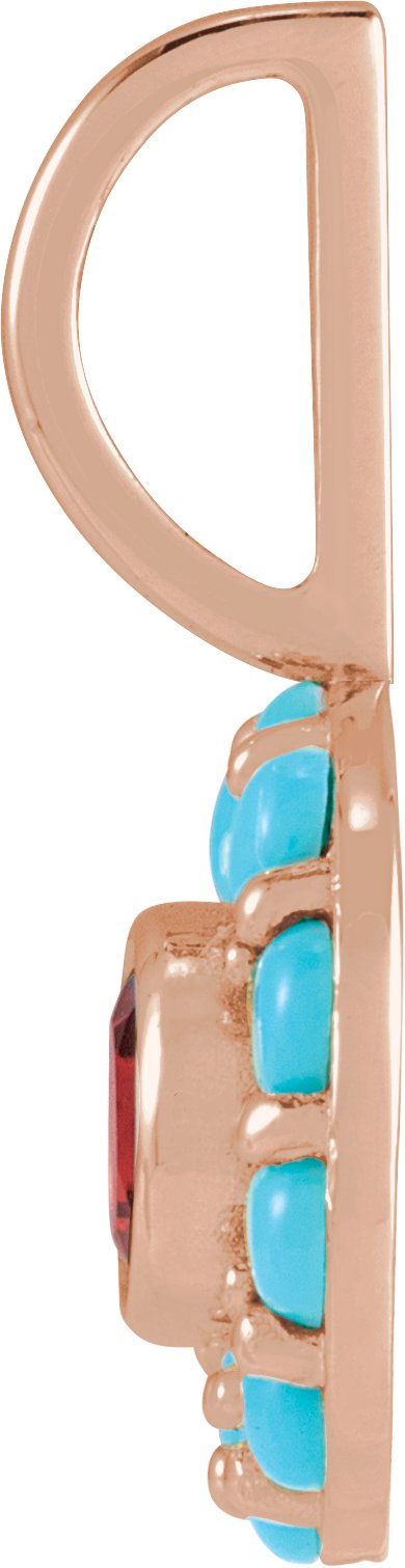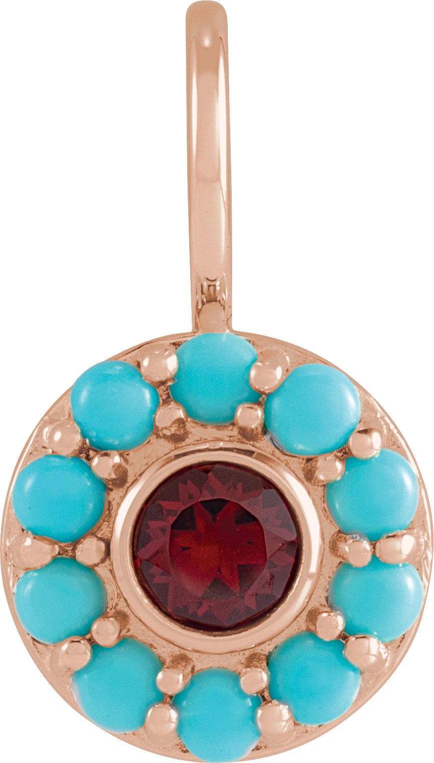14K Rose Natural Mozambique Garnet and Natural Turquoise Halo Style Charm or Pendant Ref 19750412