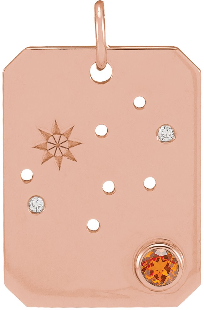 Description: Natural Spessartite Garnet And Natural Diamond Accented Zodiac Constellation Pendant