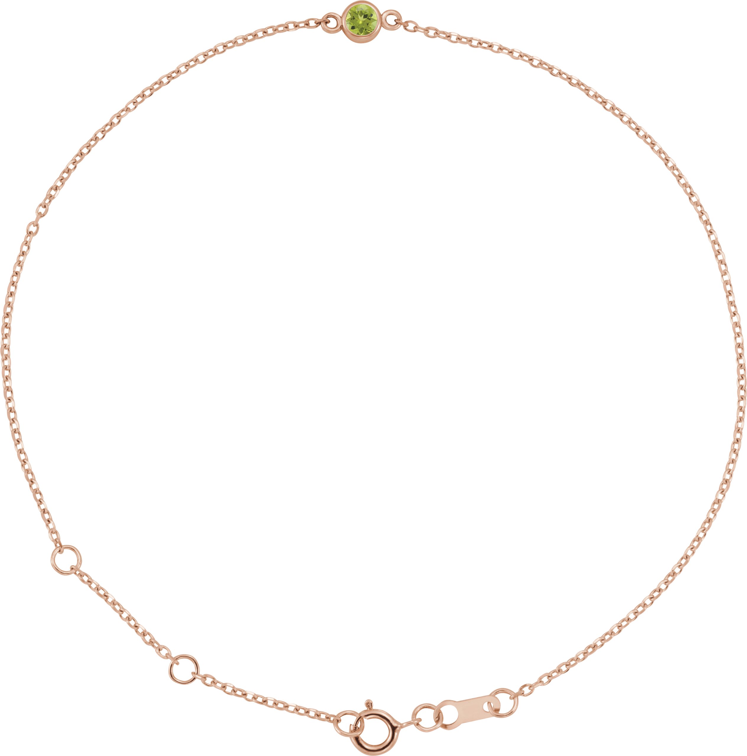 14K Rose Natural Peridot Bezel Set Solitaire 6.50 to 7.50 inch Bracelet Ref 18679819