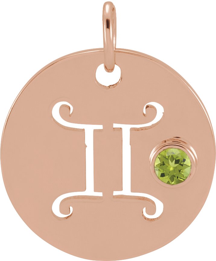 14K Rose Natural Peridot Gemini Zodiac Pendant Ref 17886595