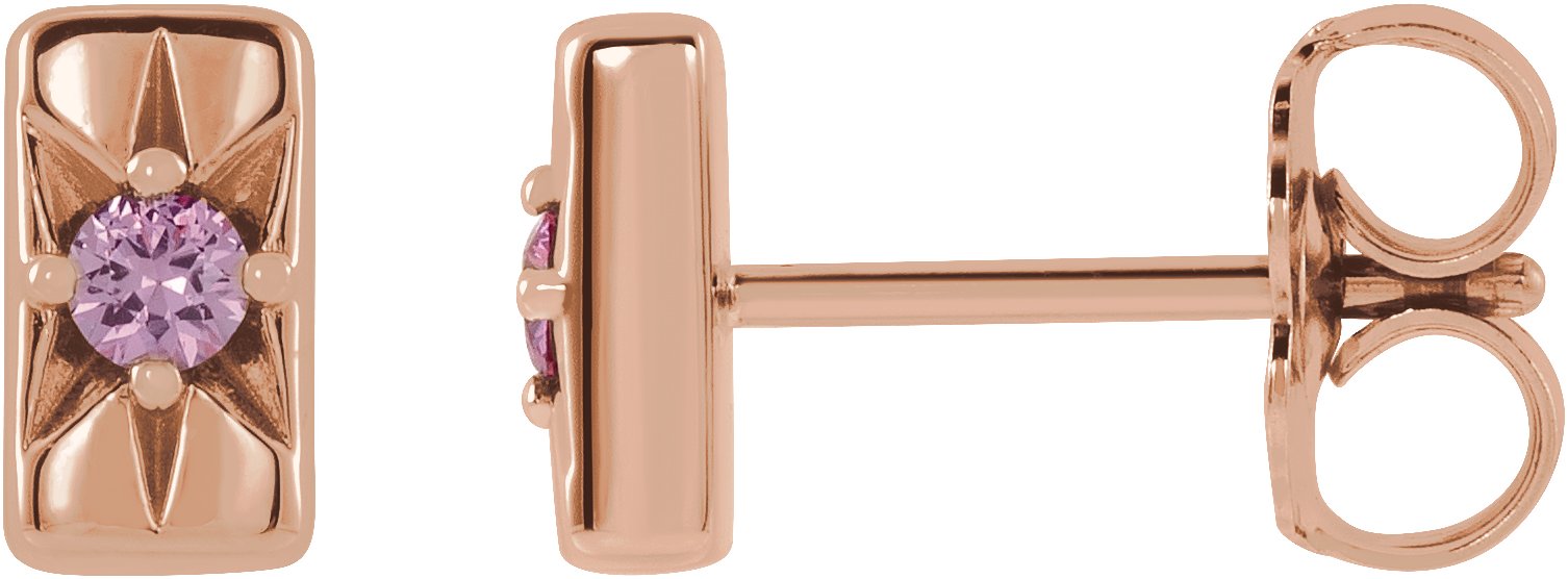 14K Rose Natural Pink Sapphire Starburst Bar Earrings Ref 17342742