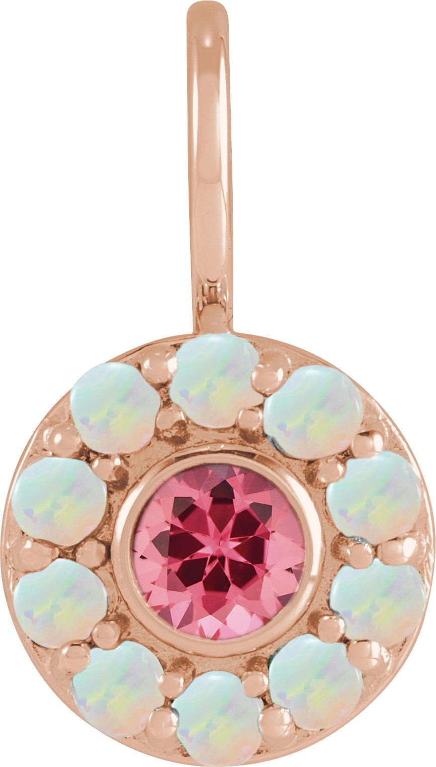 14K Rose Natural Pink Spinel and Natural White Opal Halo Style Charm or Pendant Ref 19750410