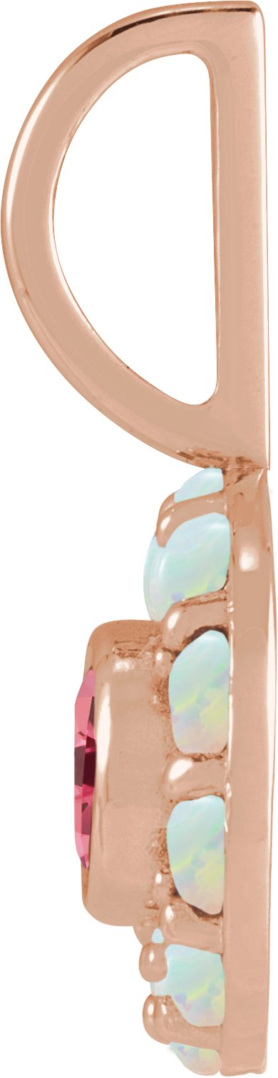 Description: Natural Pink Spinel And Natural White Opal Halo-Style Pendant