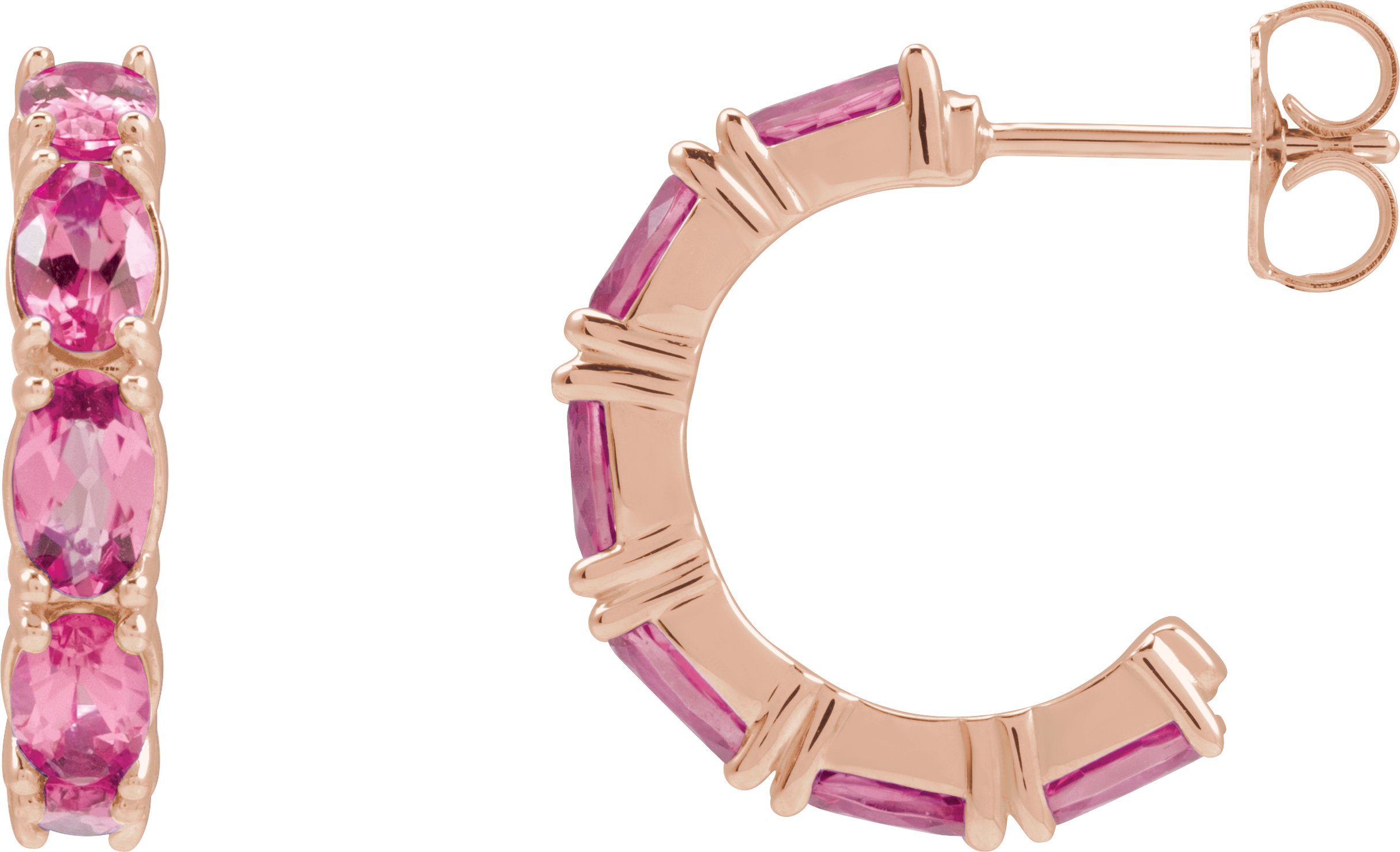 14K Rose Natural Pink Tourmaline Hoop Earrings