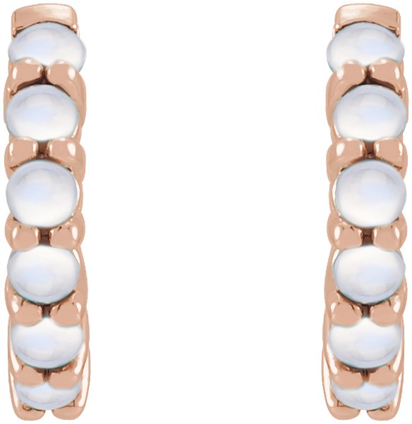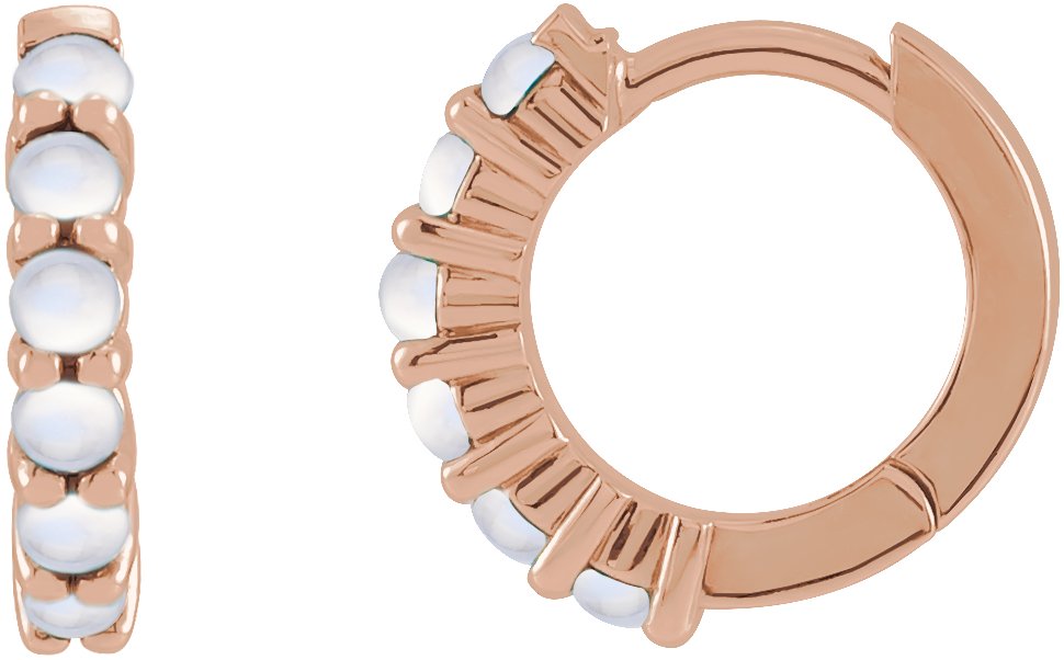 14K Rose Natural Rainbow Moonstone Cabochon 12.2 mm Huggie Hoop Earrings