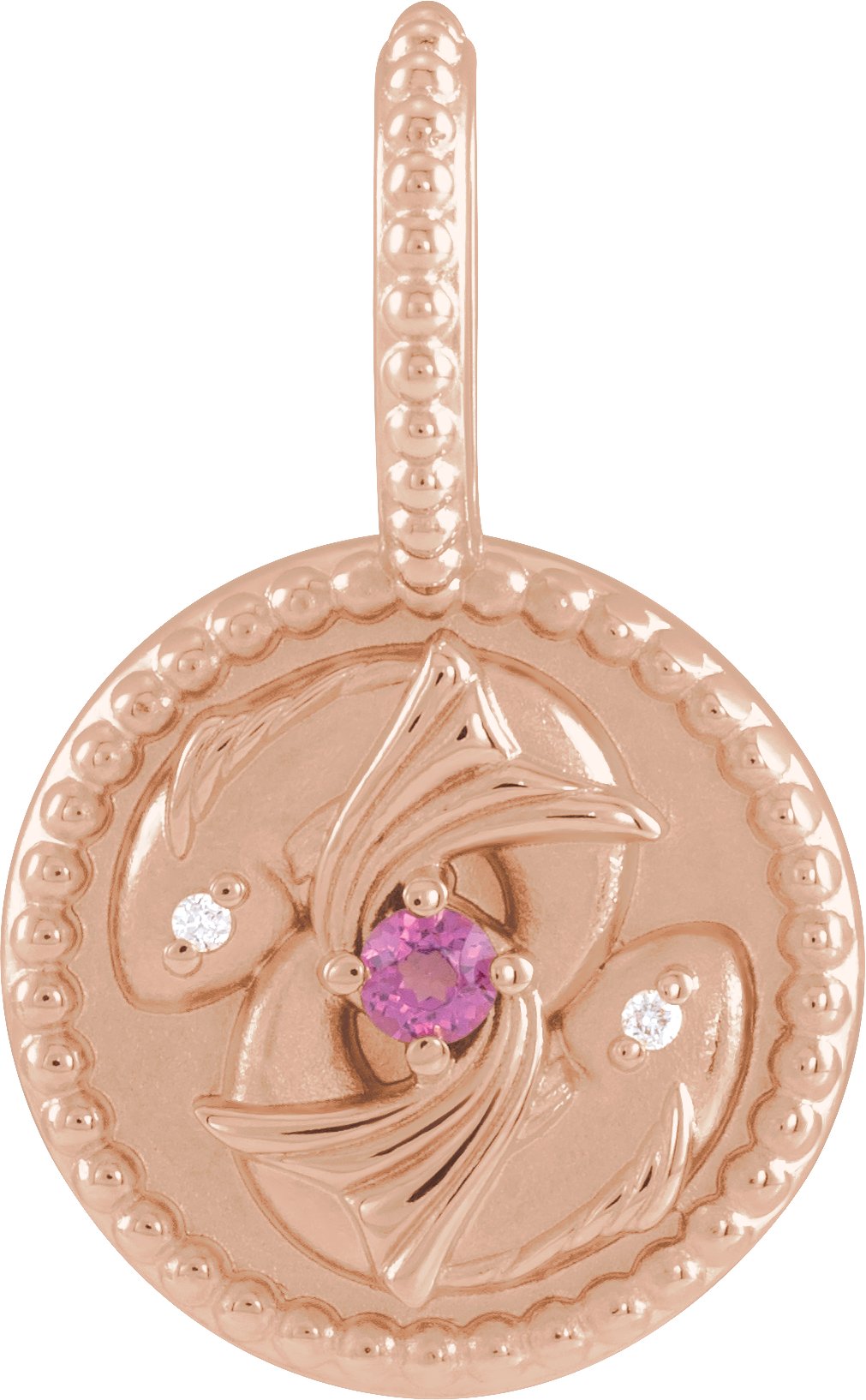 14K Rose Natural Rhodolite Garnet and .005 CTW Natural Diamond Pisces Charm or Pendant Ref 19836179
