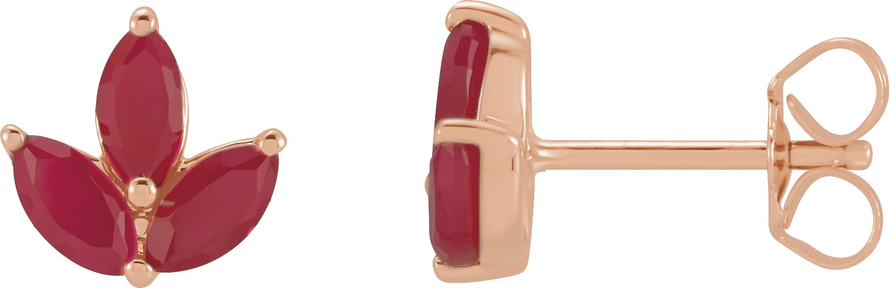 14K Rose Natural Ruby Cluster Earrings Ref 18620108