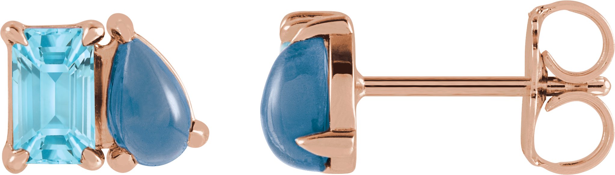 14K Rose Natural Sky Blue Topaz & Natural London Blue Topaz Two-Stone Stud Earrings