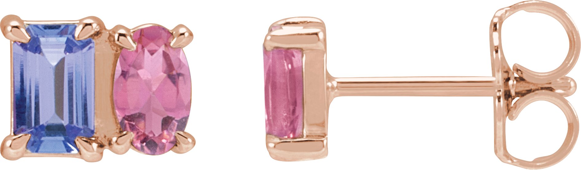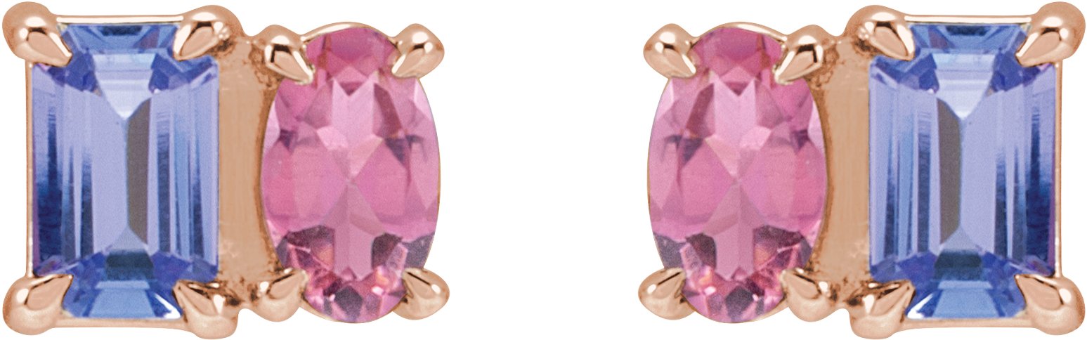 14K Rose Natural Tanzanite & Natural Pink Tourmaline Two-Stone Stud Earrings