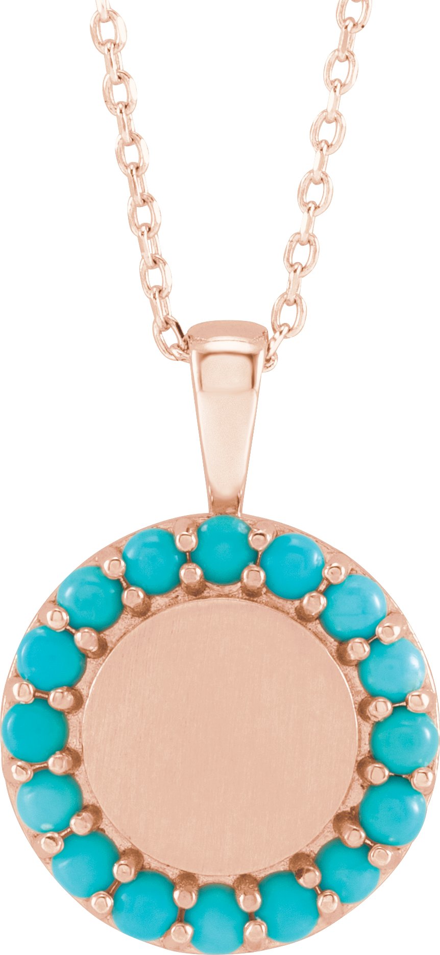 14K Rose Natural Turquoise Engravable Halo Style 16 to 18 inch Necklace Ref 18532072