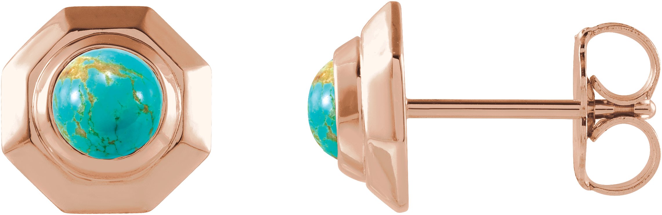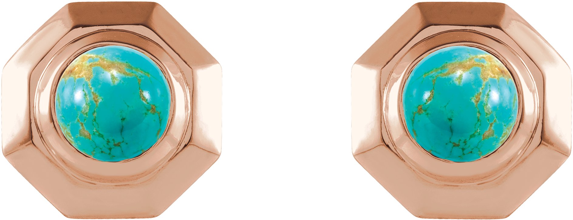 14K Rose Natural Turquoise Geometric Cabochon Earrings Ref 17399499